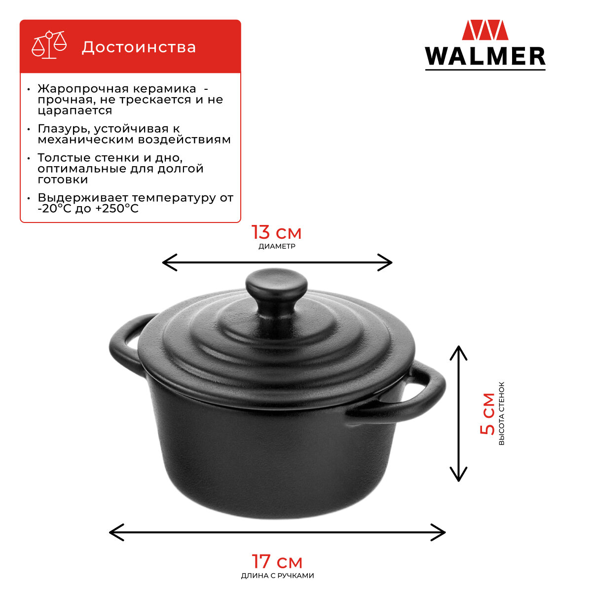 Горшочек для запекания с крышкой Walmer Iron-Black 0.45 л цвет черный