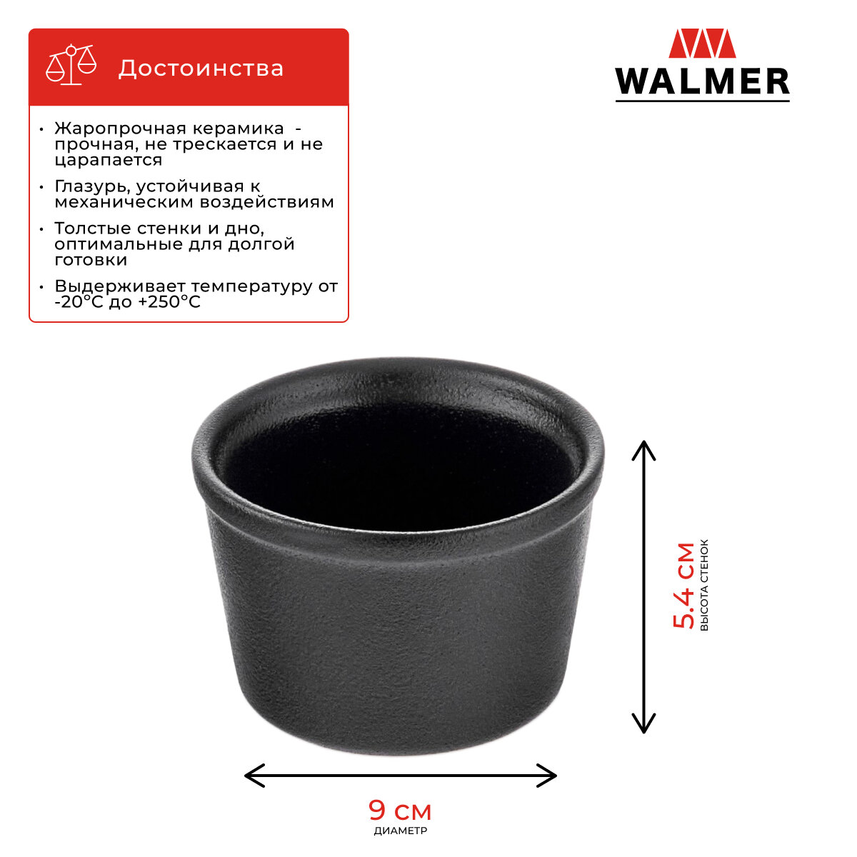 Горшочек для запекания Walmer Iron-Black 9 см 0.2 л цвет черный