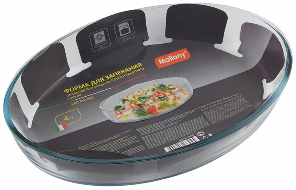 СохранитьФорма для запекания из боросил стекла 4 л, овальной формы без ручек, серия Cristallino, Mallony (005567) интересное: