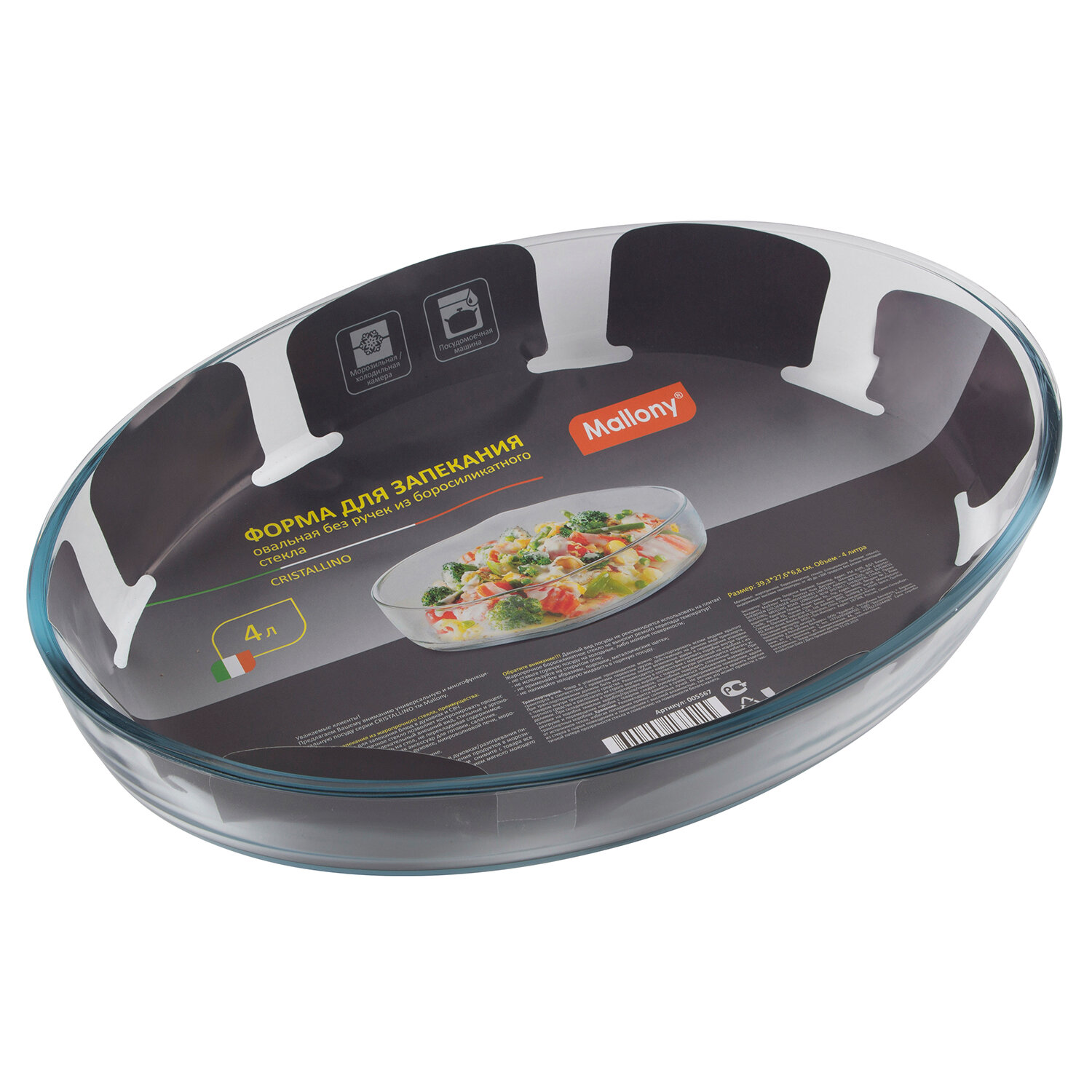 Купить Форма для запекания из боросил стекла 4 л, овальной формы без ручек, серия Cristallino, Mallony (005567)