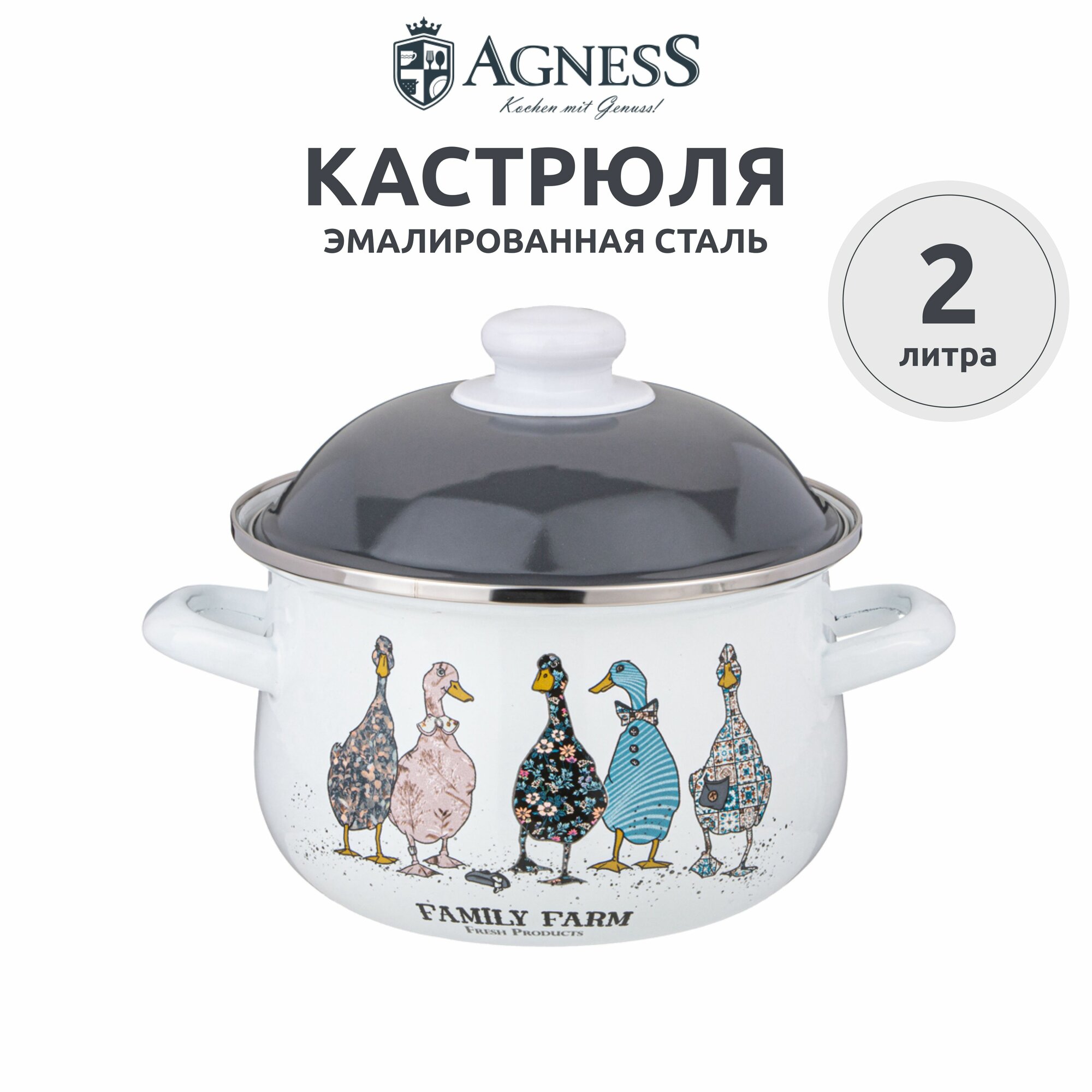 Купить Кастрюля Agness Эмалированная С Эмалкрышкой Серия Family Farm 2,0 Л 18*11 СМ 934-621 .