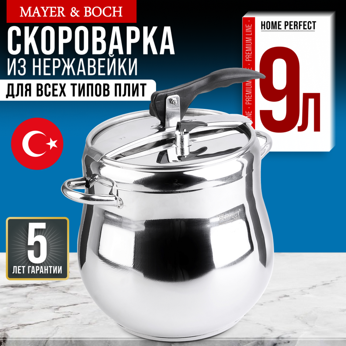 Скороварка HOME PERFECT объём 9 л, из нержавеющей стали 800-04