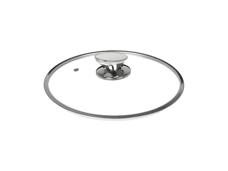 Крышка стеклянная TimA с металлическим ободком и овальной ручкой (нержавеющая сталь), пароотвод, диаметр 22см