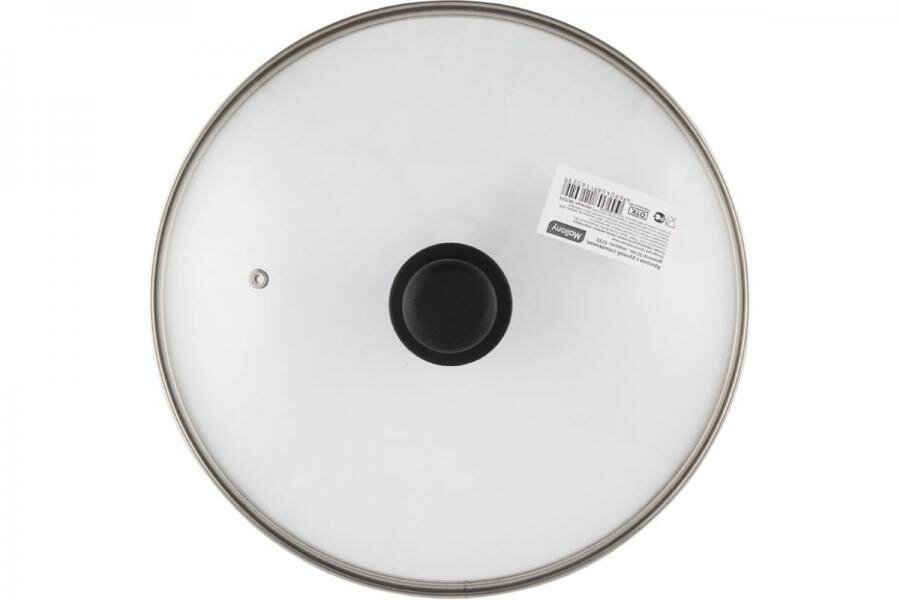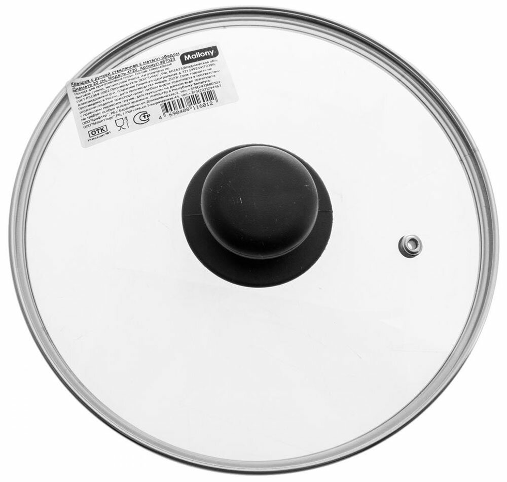 Крышка с ручкой стеклянная Mallony 20см., с метал/обод, паровыпуск, низ.
