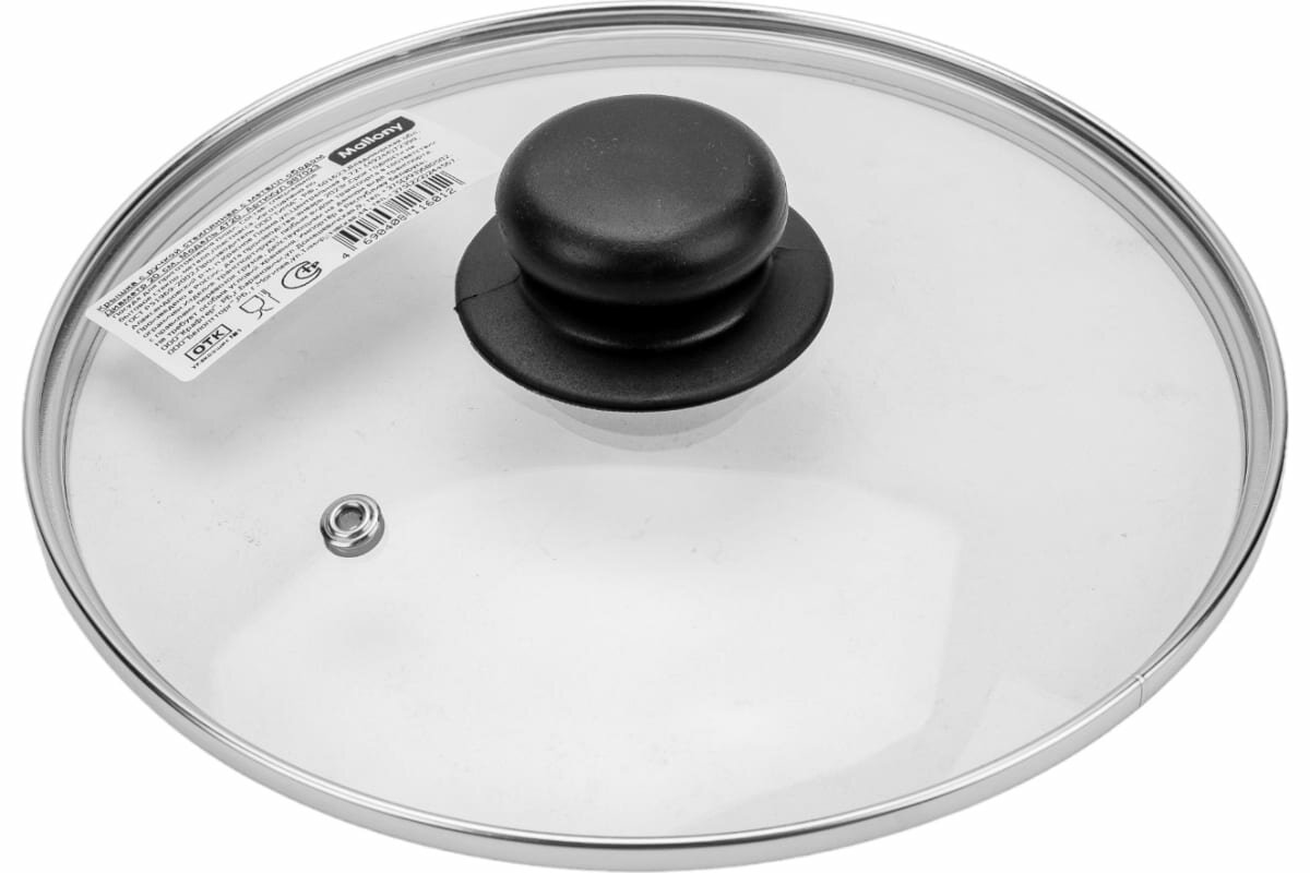 Крышка с ручкой стеклянная Mallony 20 см, паровыпуск