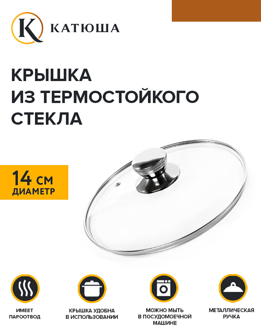 Крышка катюша 14см с пароотводом стекло, нерж.сталь