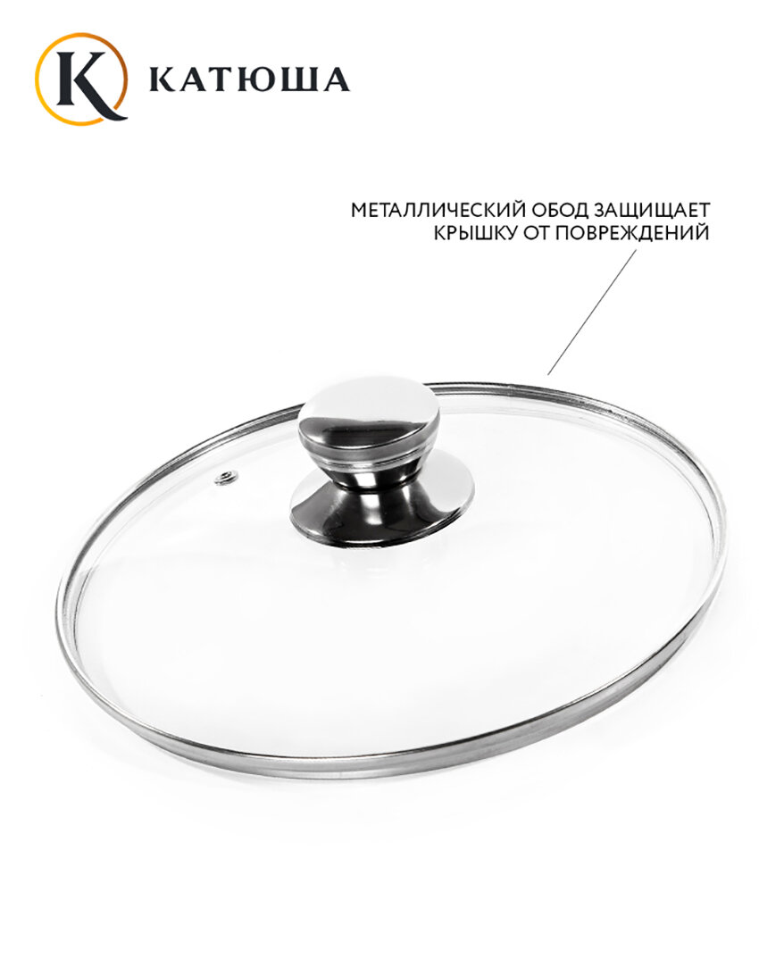 Крышка стеклянная с пароотводом Катюша с металлической ручкой, 18 см