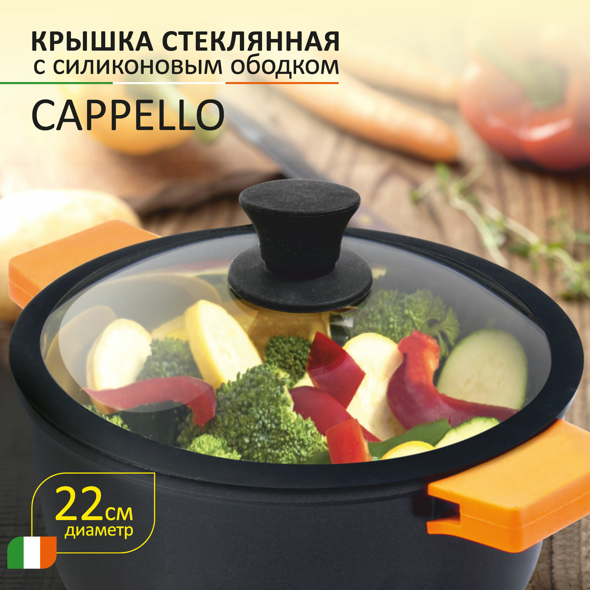 Крышка стеклянная с силиконовым ободком CAPPELLO, 22 см диа интересное: