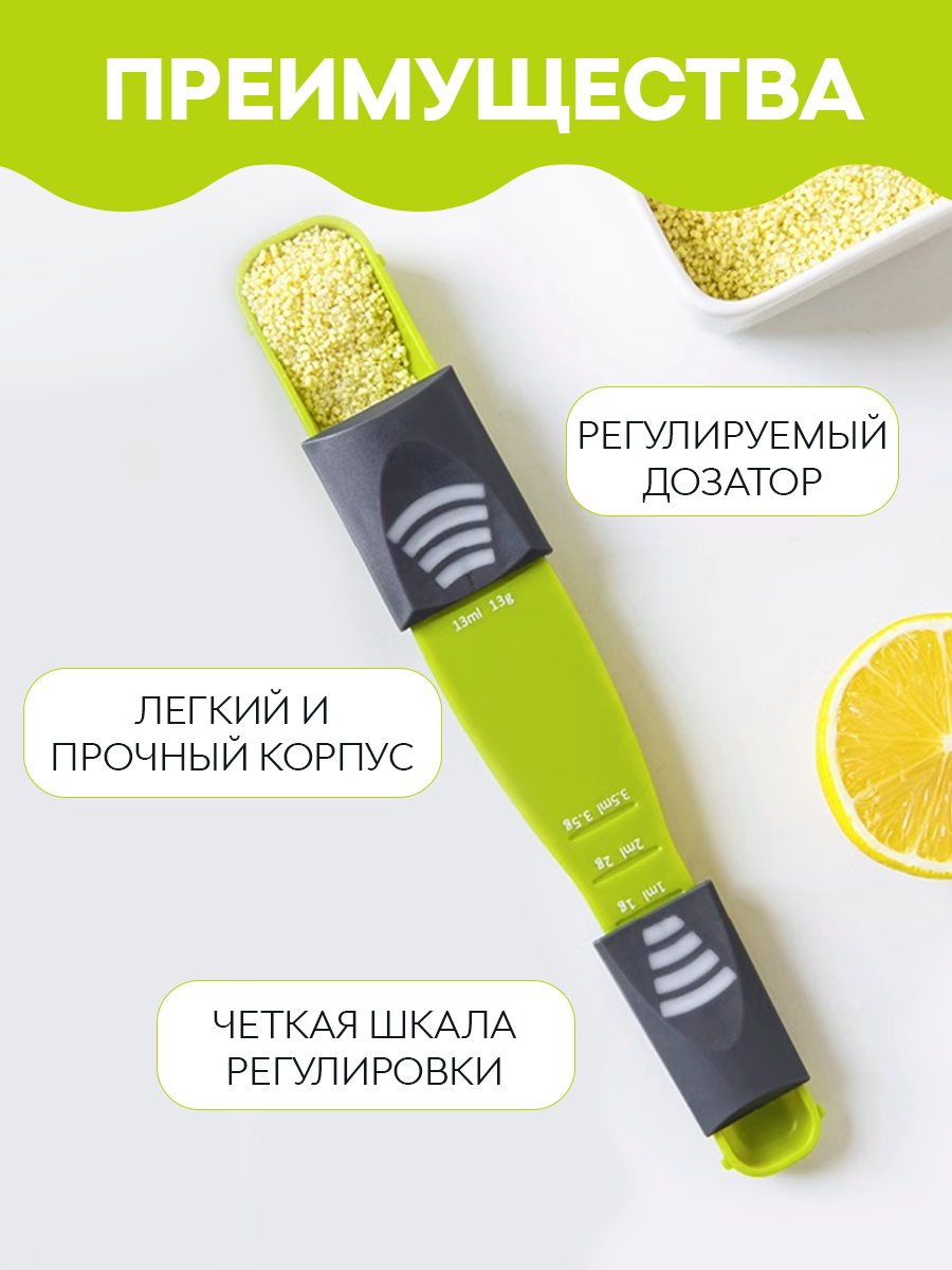 Кухонная мерная ложка, универсальная, регулируемая, для сыпучих и жидких продуктов. VasVas интересное: