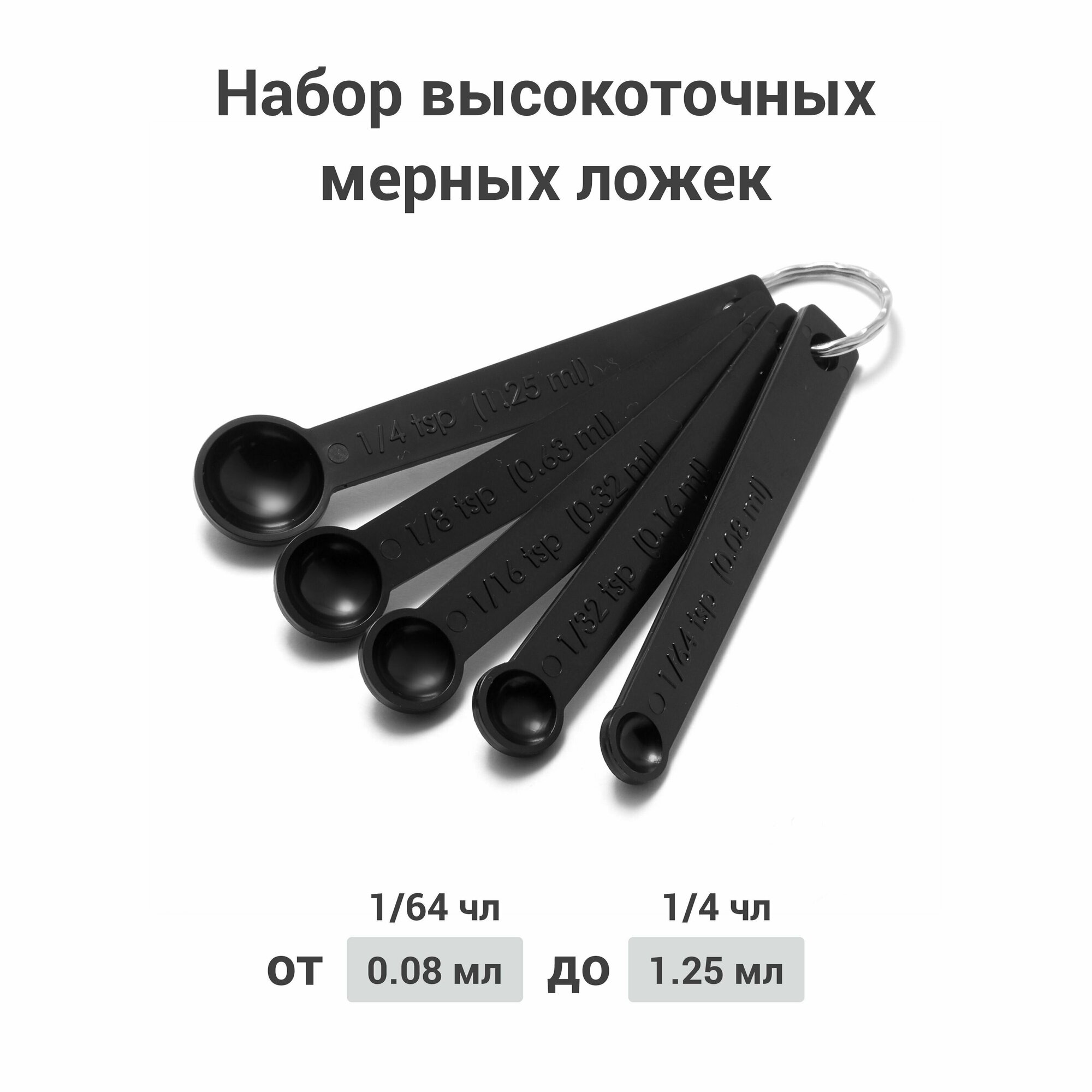 | Дополнительная информация | 5 мерных ложек: 1/64 чайной ложки (0,08 мл); - 1/32 чайной ложки (0,16 мл); - 1/16 чайной ложки (0,32 мл); - 1/8 чайной ложки (0,63 мл); - 1/4 чайной ложки (1,25 мл). |