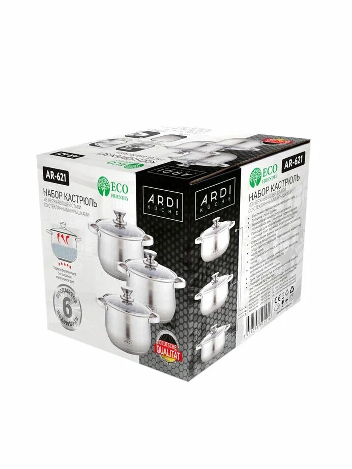 Набор кастрюль ARDI Küche из нержавеющей стали 6 предметов AR-611
