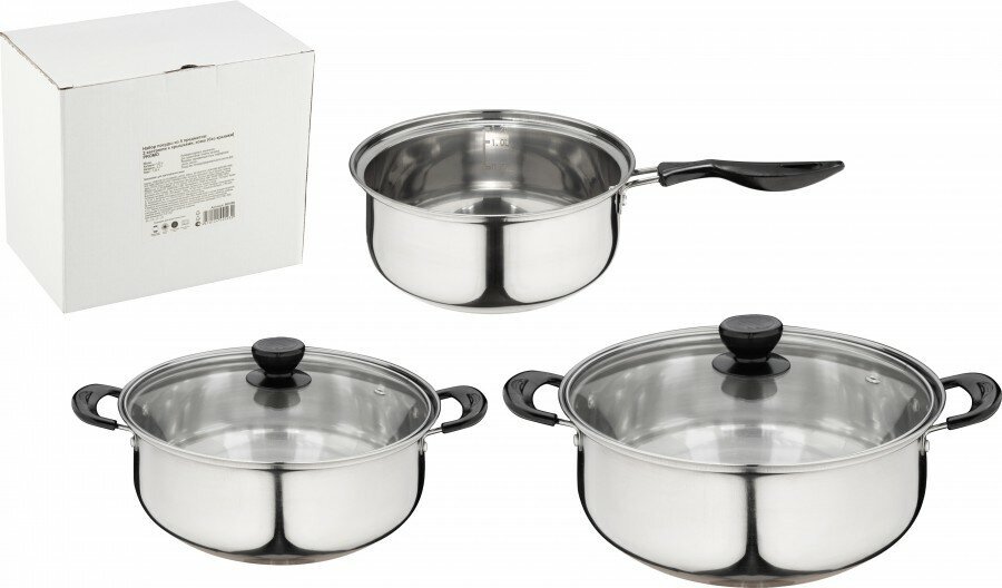 Набор посуды Mallony (ковш без крышки 1,25л, кастрюли с крышками: 1,25л/2,2л) .