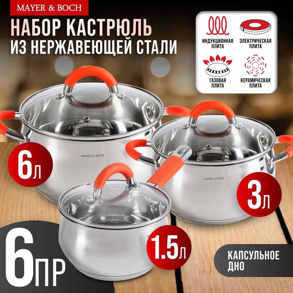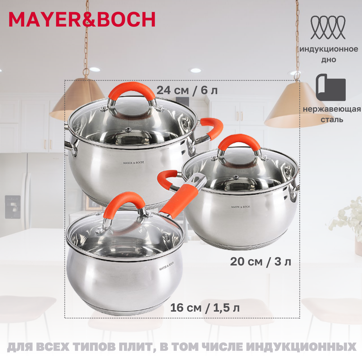 Купить Набор кастрюль MAYER&BOCH из нержавеющей стали с крышками 30994