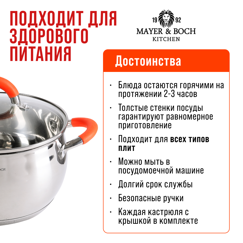 Набор кастрюль MAYER&BOCH из нержавеющей стали с крышками