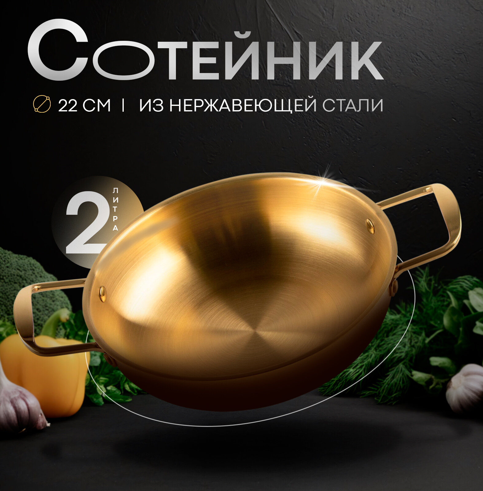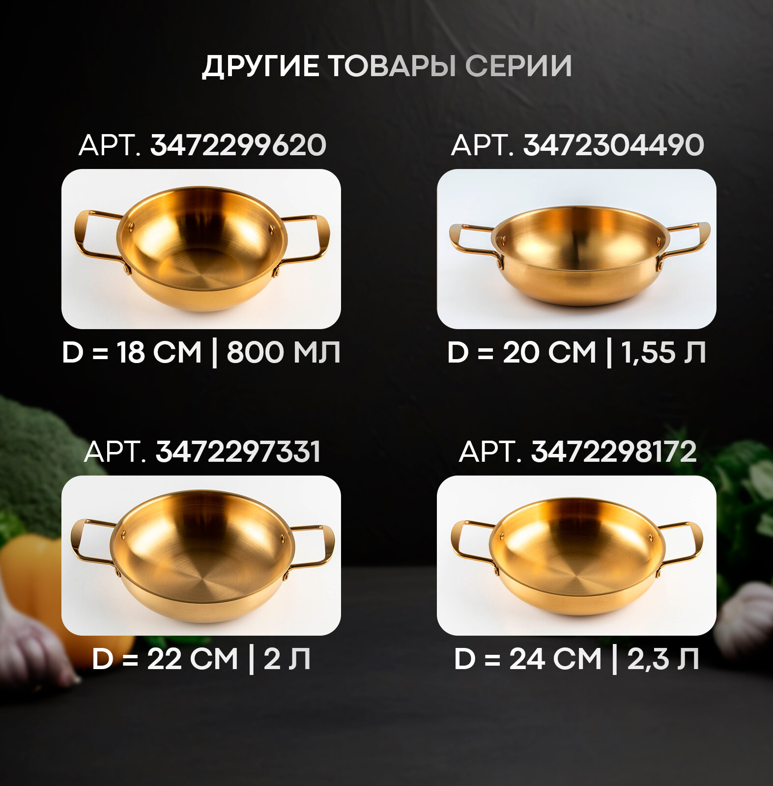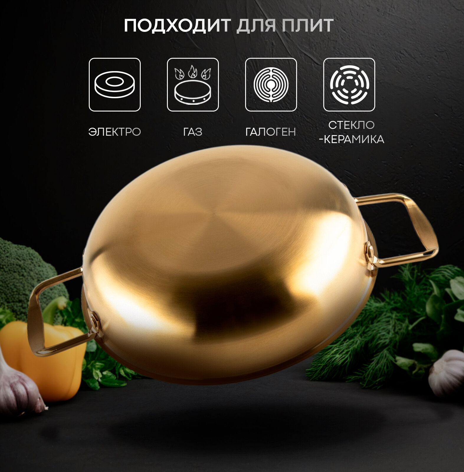 Сотейник, d=22 см, h=6,5, толщина 1 мм, 201 сталь, цвет золотой