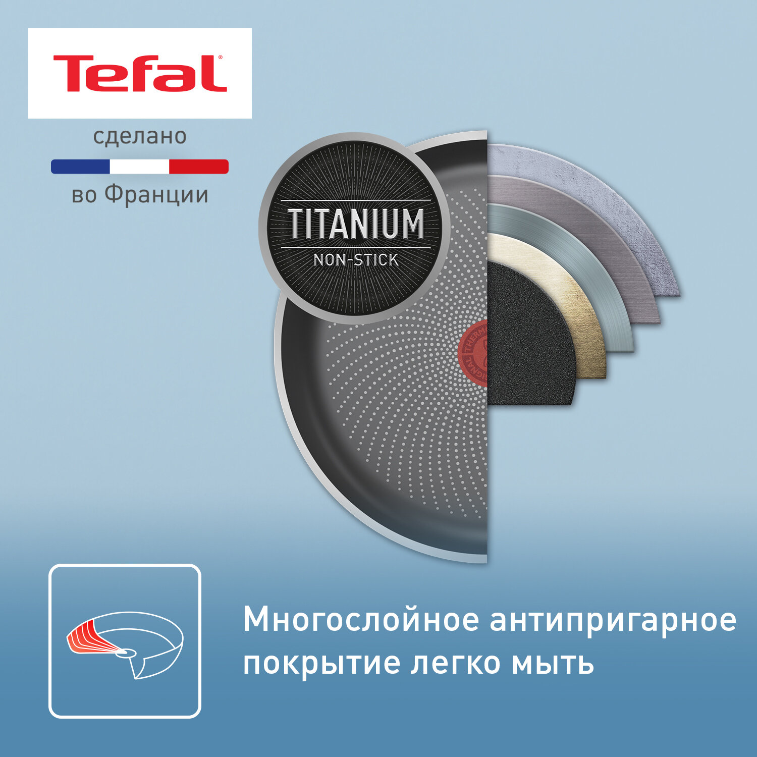 Сковорода для блинов Tefal Easy Chef 25 см, с индикатором температуры, антипригарным покрытием, для всех типов плит, включая индукционные, сделана во Франции