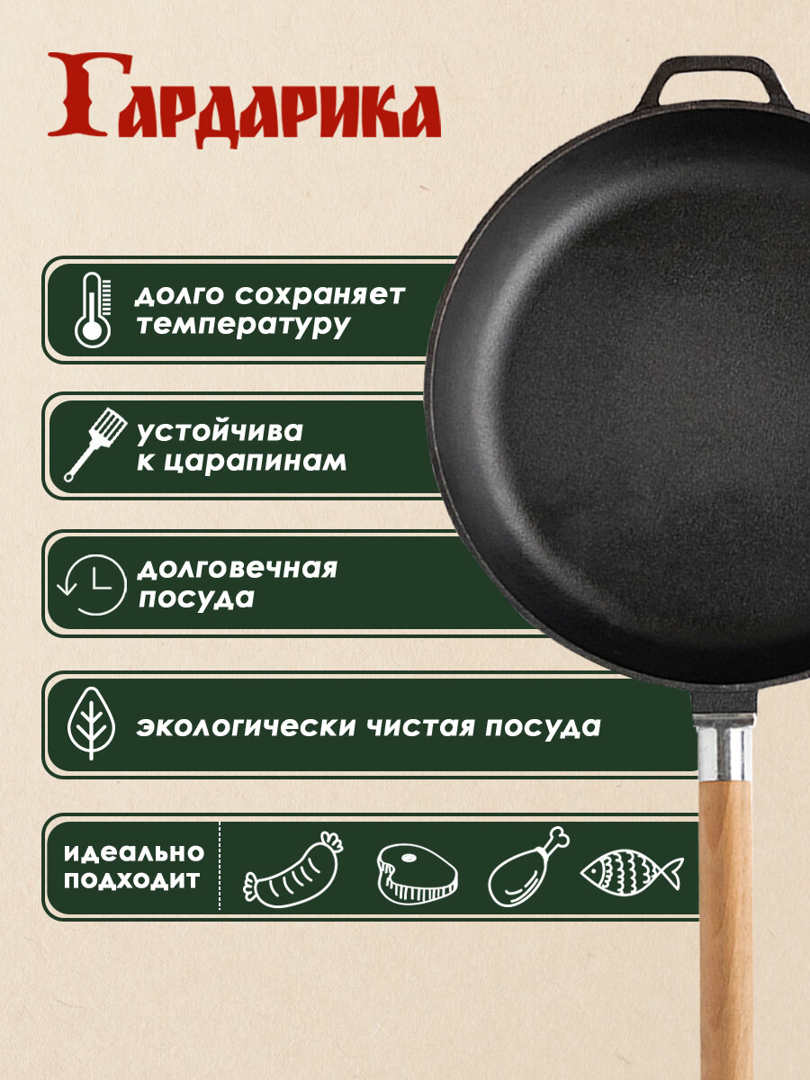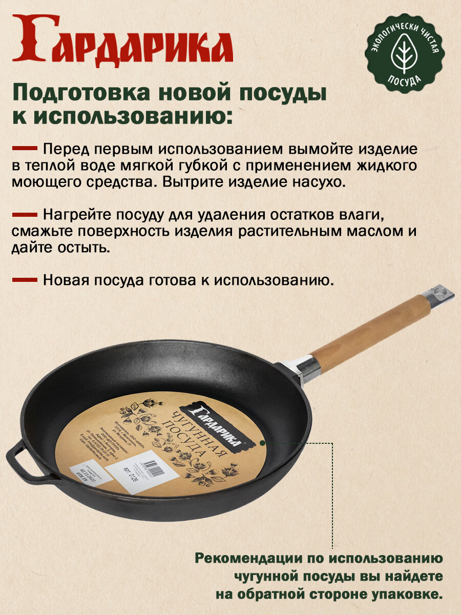 Сковорода чугунная, д.26см, со съемной ручкой, Гардарика, экологически чистый материал