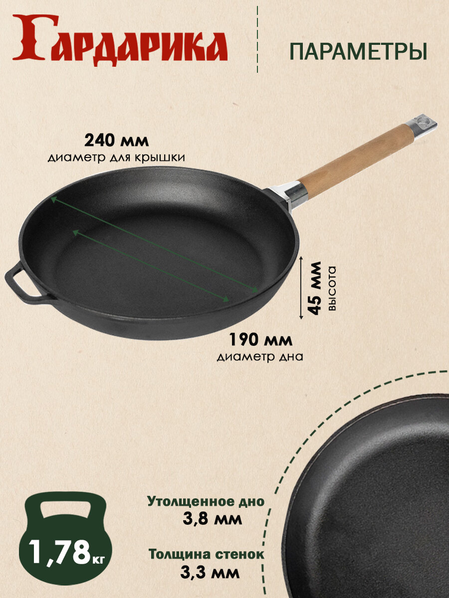 Сковорода чугунная 24 см со съемной ручкой Гардарика