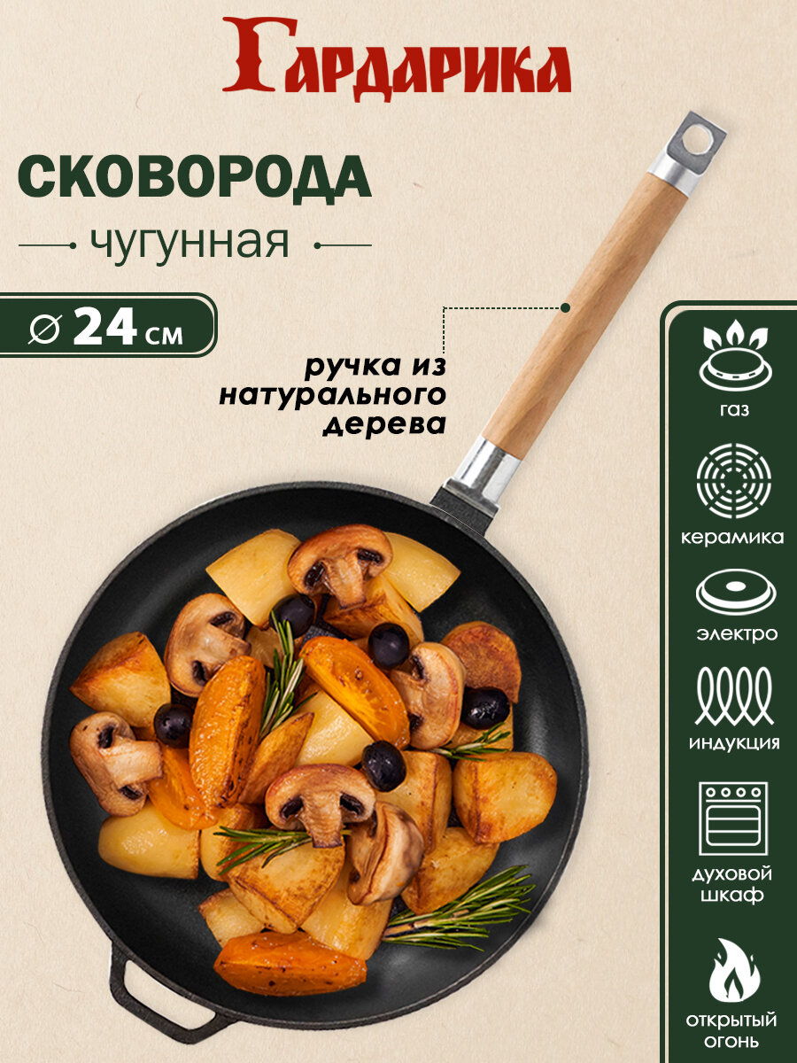 Купить Сковорода чугунная Гардарика, д.24 см, со съемной ручкой, экологически чистый материал