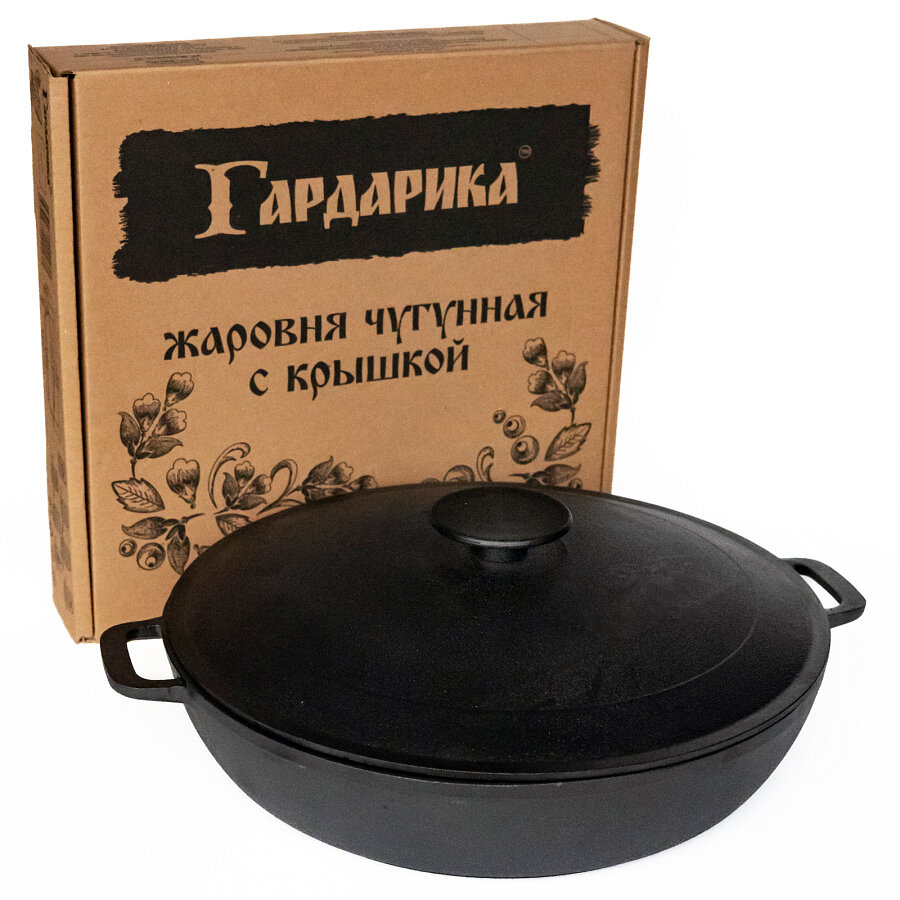 СохранитьЖаровня Гардарика чугунная с двумя ручками с чугунной крышкой 400 (1840-3) интересное: