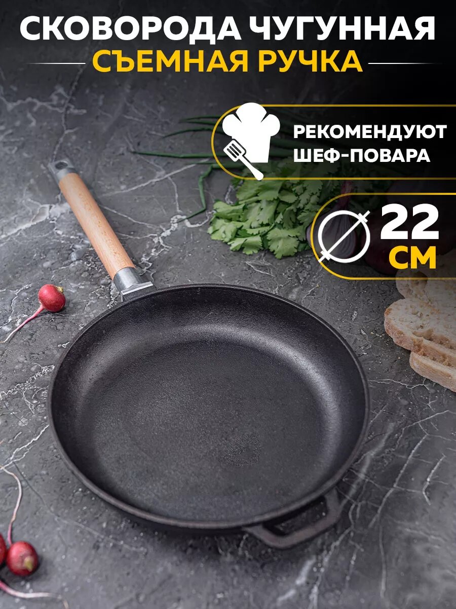 Купить Сковорода чугунная 22 см со съемной ручкой