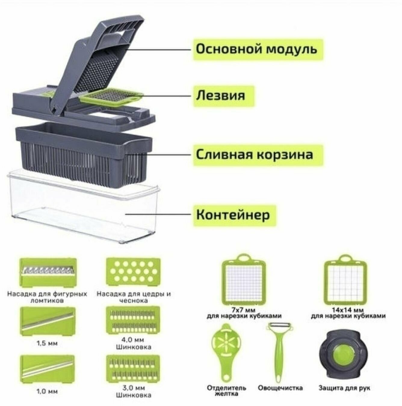 Многофункциональная кухонная овощерезка ручная с контейнером 14 в 1 интересное:
