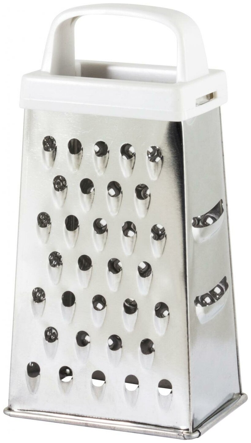 Купить Терка четырехгранная, жесть, 8,5 x 6,3 x 17 см, пластиковая ручка, белый