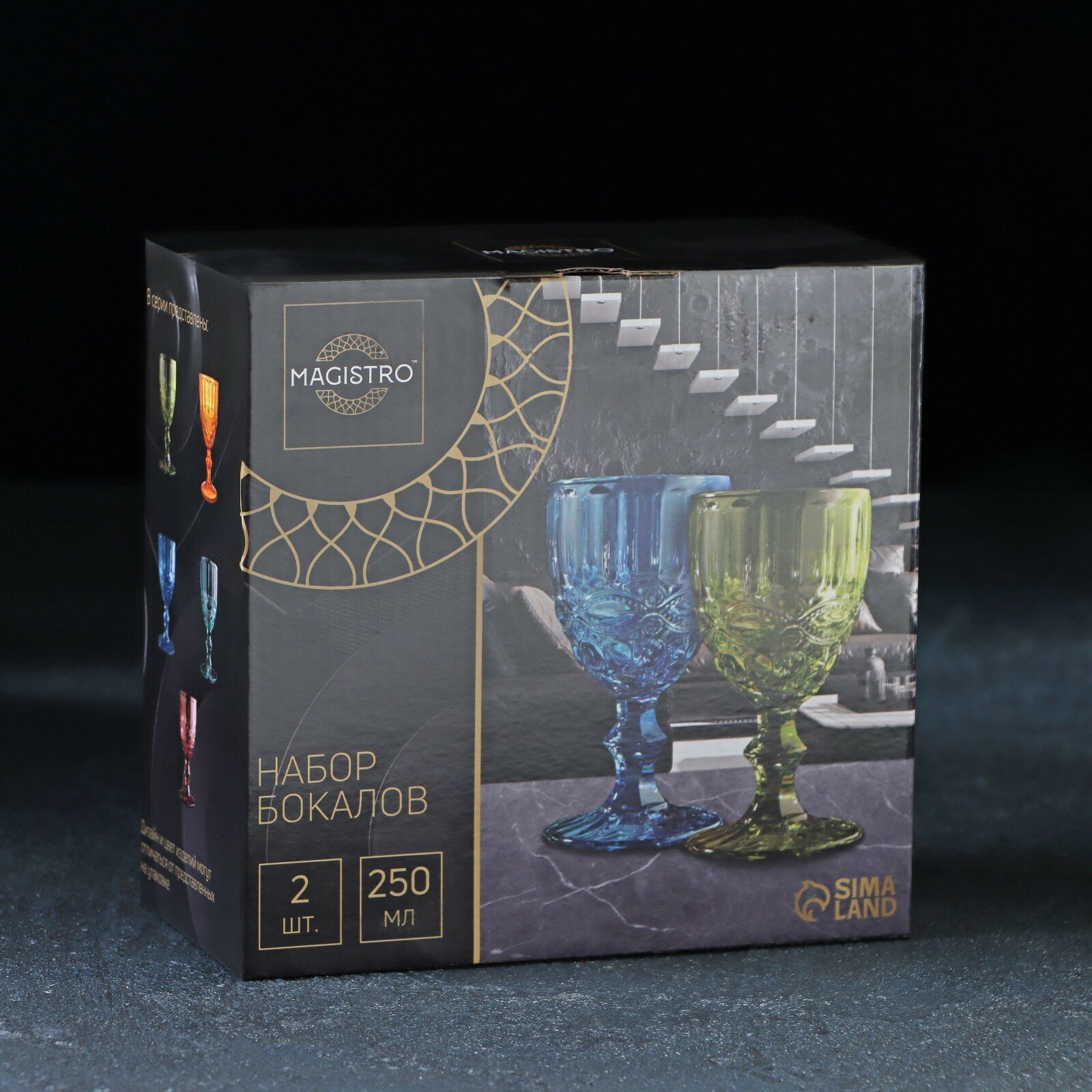 Набор бокалов для вина стеклянный Magistro «Ла-Манш», 250 мл, 8×15,5 см, 2 шт, цвет зелёный