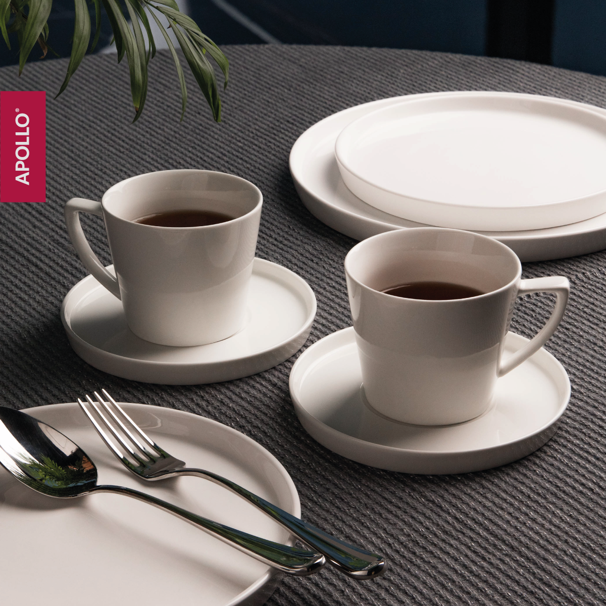 Чайная пара, чашка с блюдцем из фарфора 250 мл Apollo "Blanco", 4 предмета