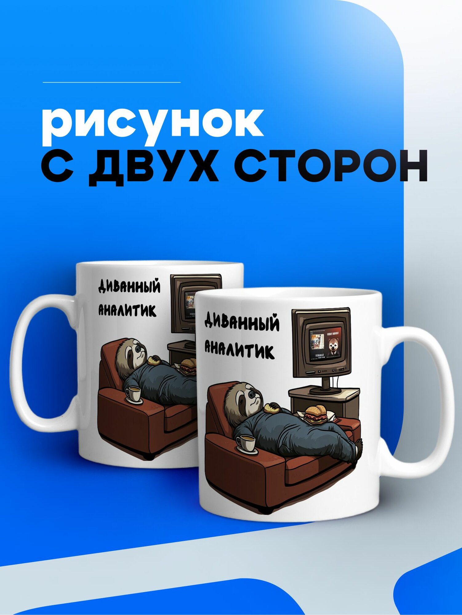СохранитьБольшая кружка 1 литр для чая и кофе в подарок с принтом "Диванный аналитик" интересное: