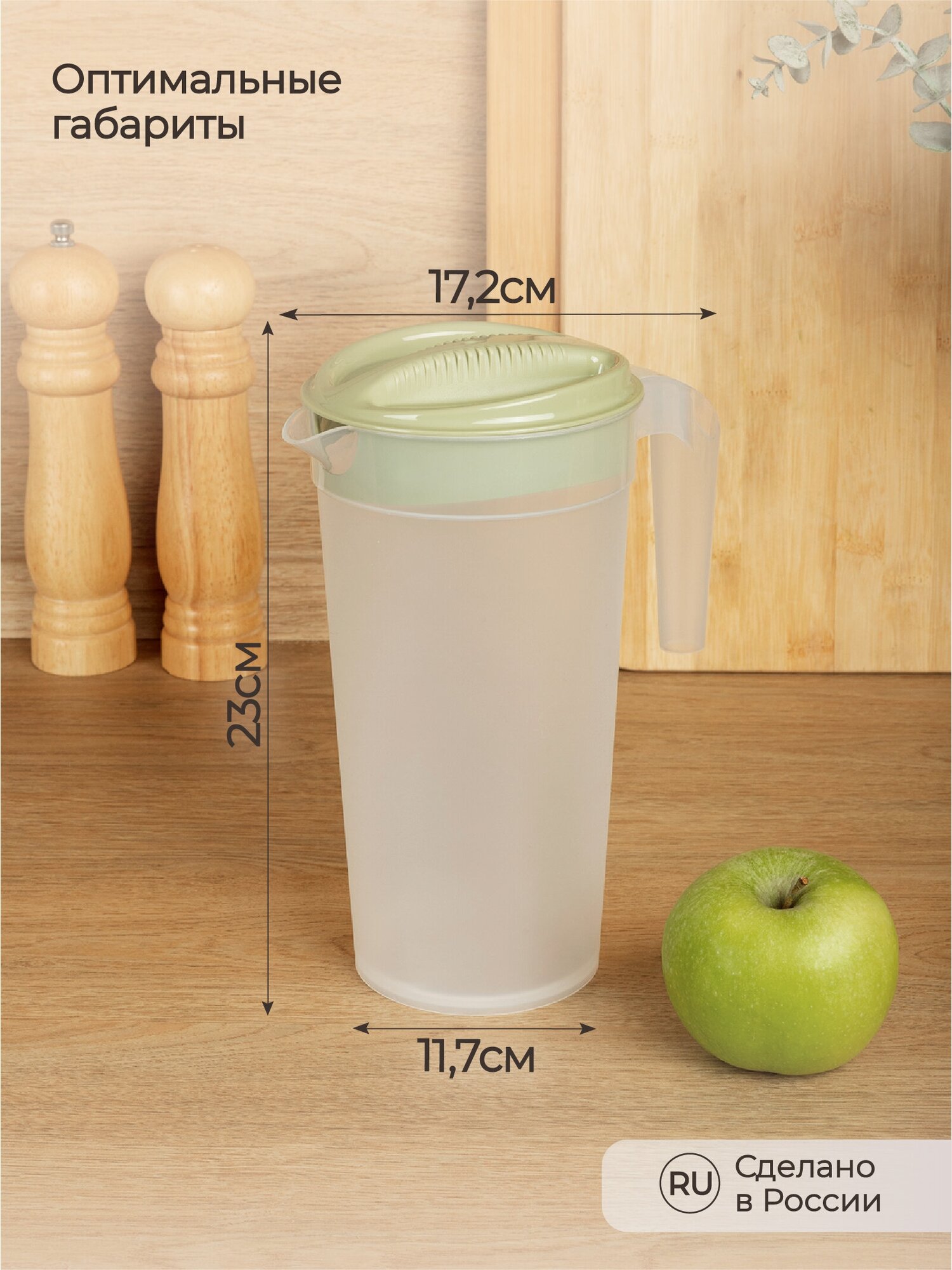 Купить Кувшин для воды с крышкой "Phibo", 1500 мл, 17,2х11,7х23 см, зеленый