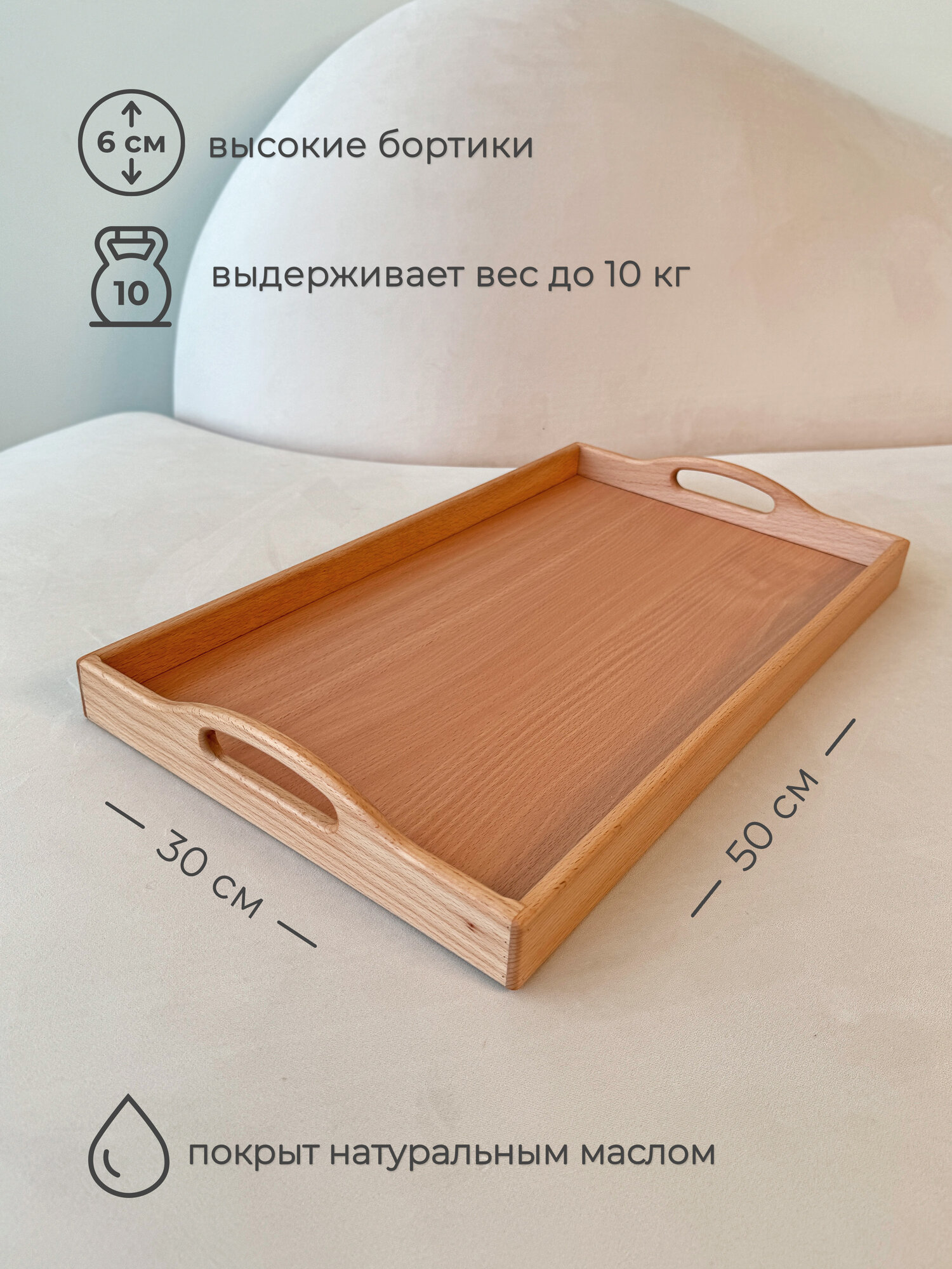 Поднос деревянный "Экоподача", 50x30x6 см интересное: