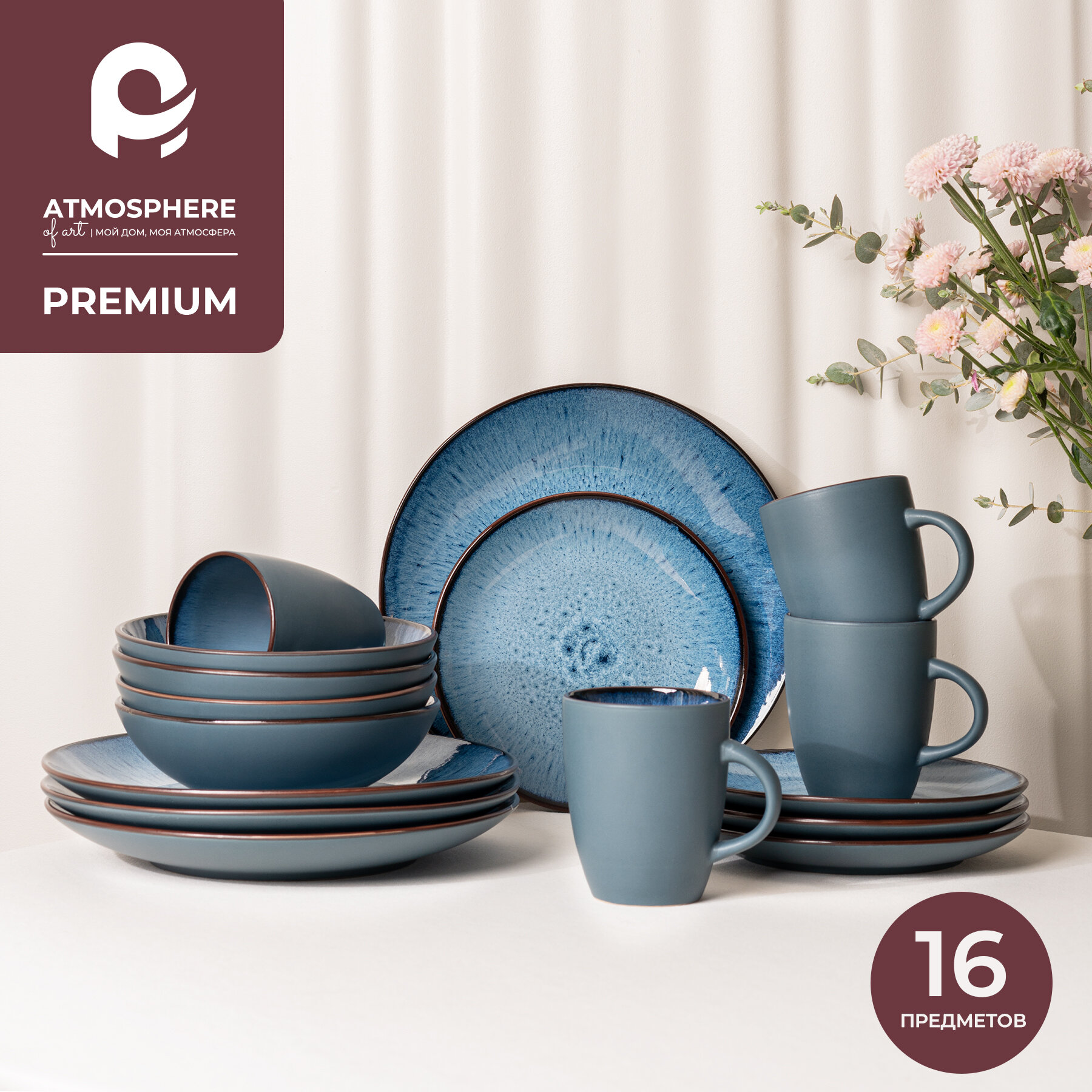 Набор посуды керамической с кружками Atmosphere of Art "Azure" - 12 предметов, синий