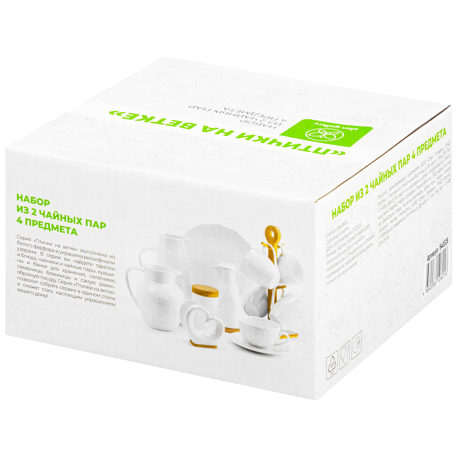 Купить Чашка с блюдцем, чайная пара 4 предмета Elan Gallery "Птички на ветке", 360 мл