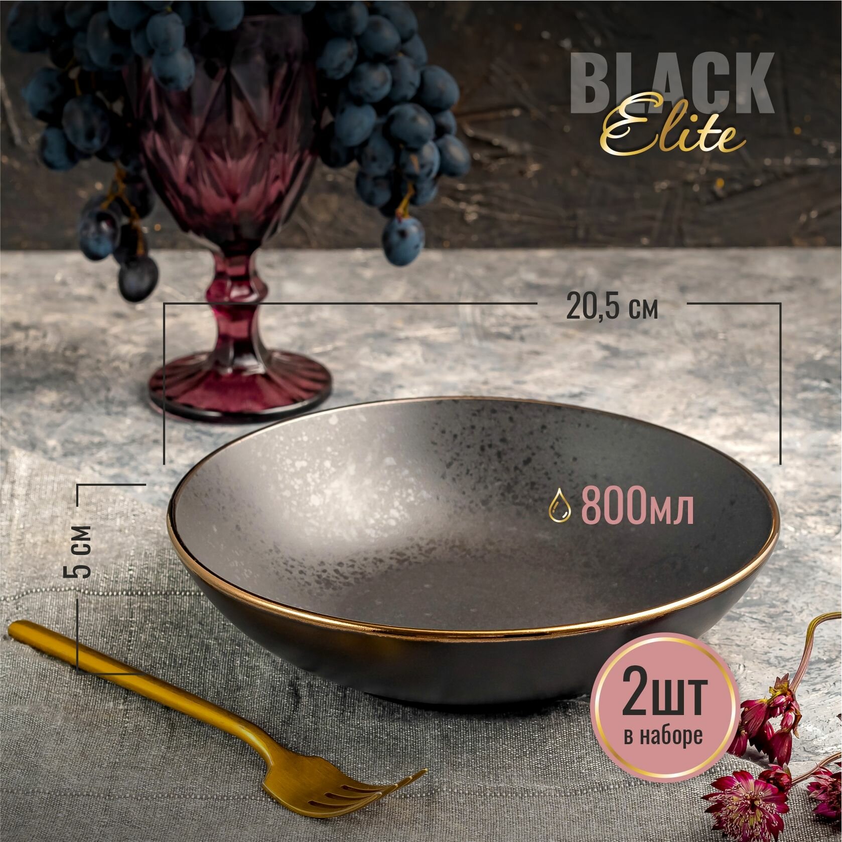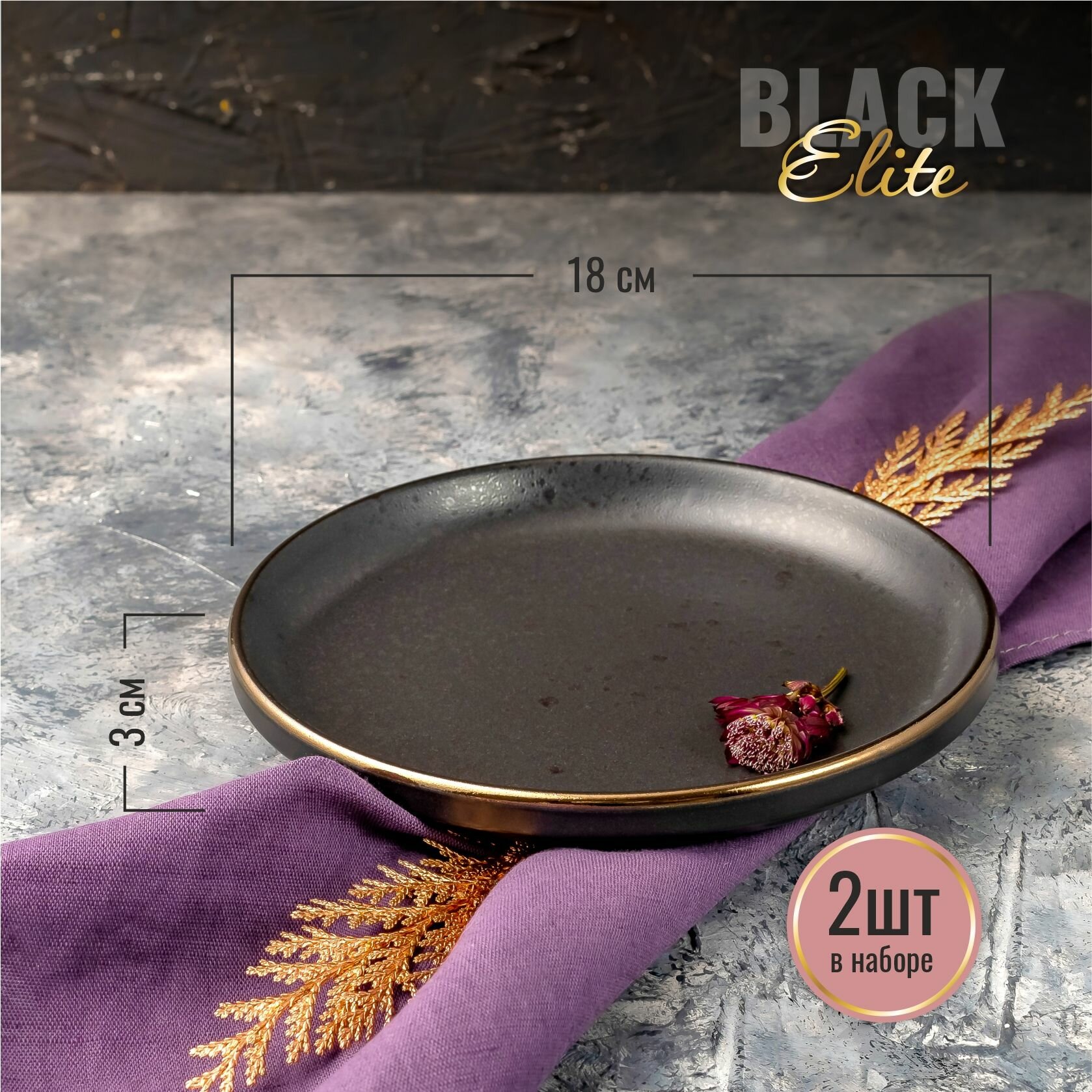 Набор тарелок 26см, 2шт Elite black тарелки круглые черные керамические тарелка для второго