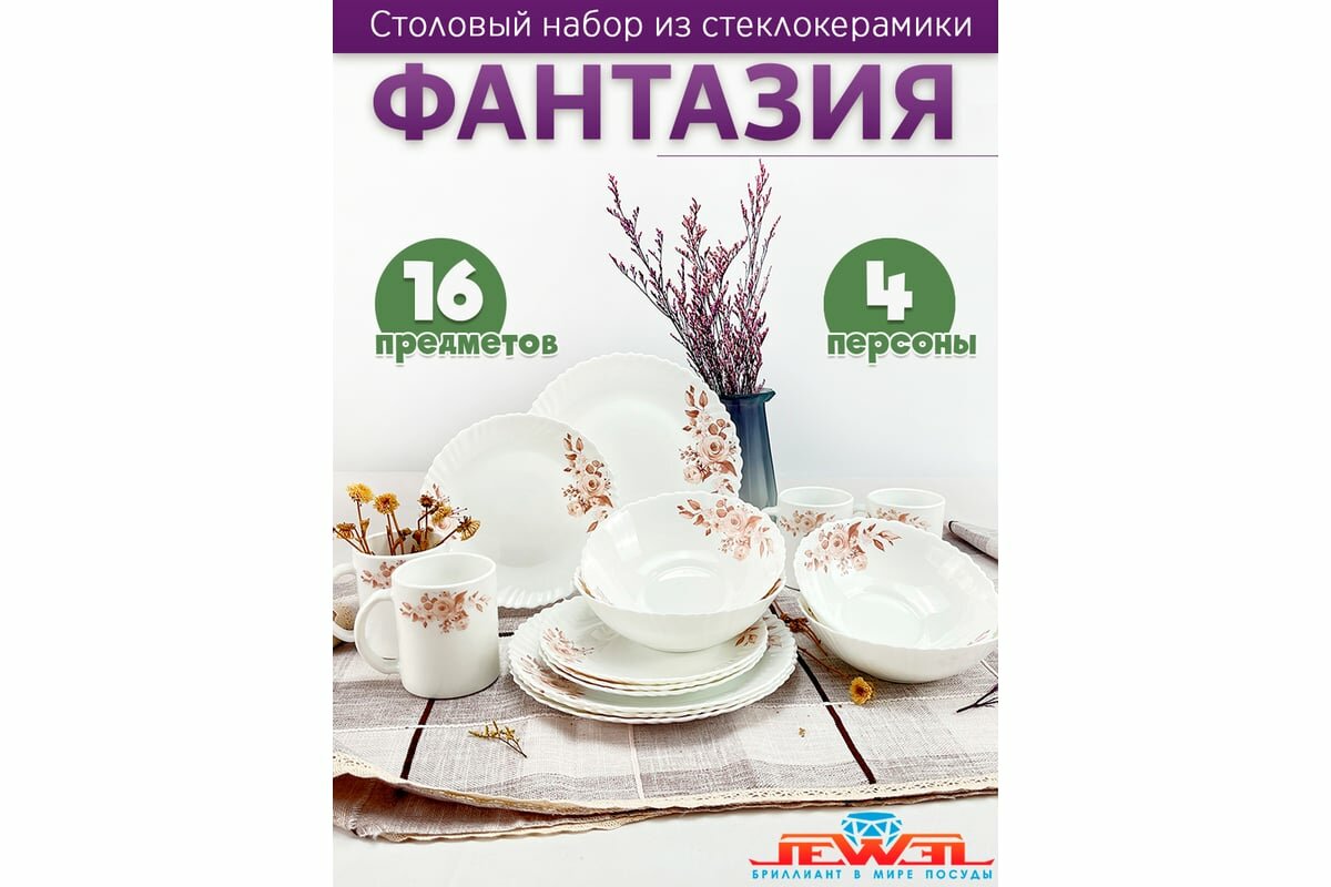 Набор столовый Jewel Фантазия 16 предметов (стеклокерамика)