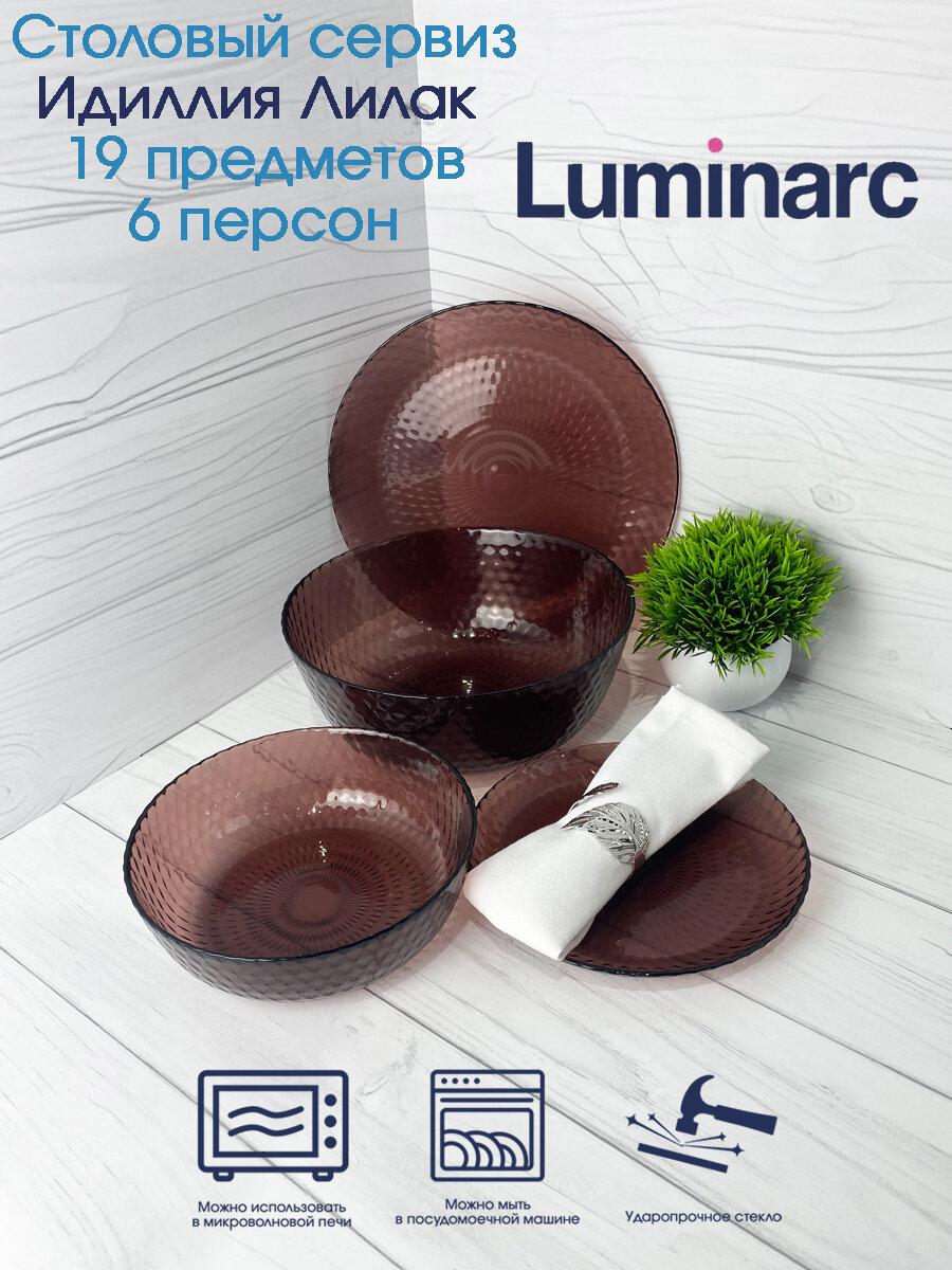 Столовый сервиз Luminarc Идиллия Лилак 19 предметов на 6 персон