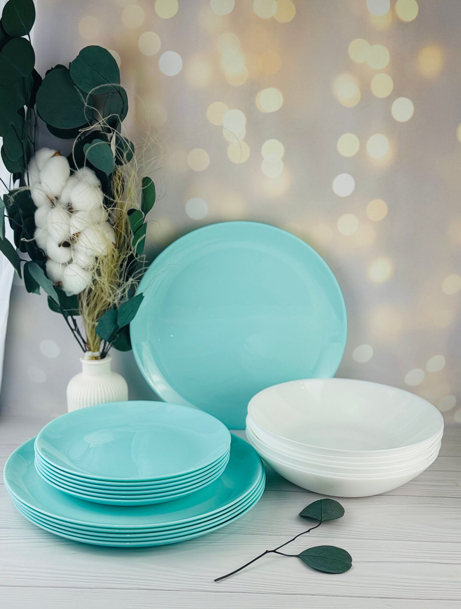 Набор столовой посуды Luminarc дивали ТЮРКУАЗ&БЕЛЫЙ 18 предметов / посуда для сервировки стола / тарелки набор