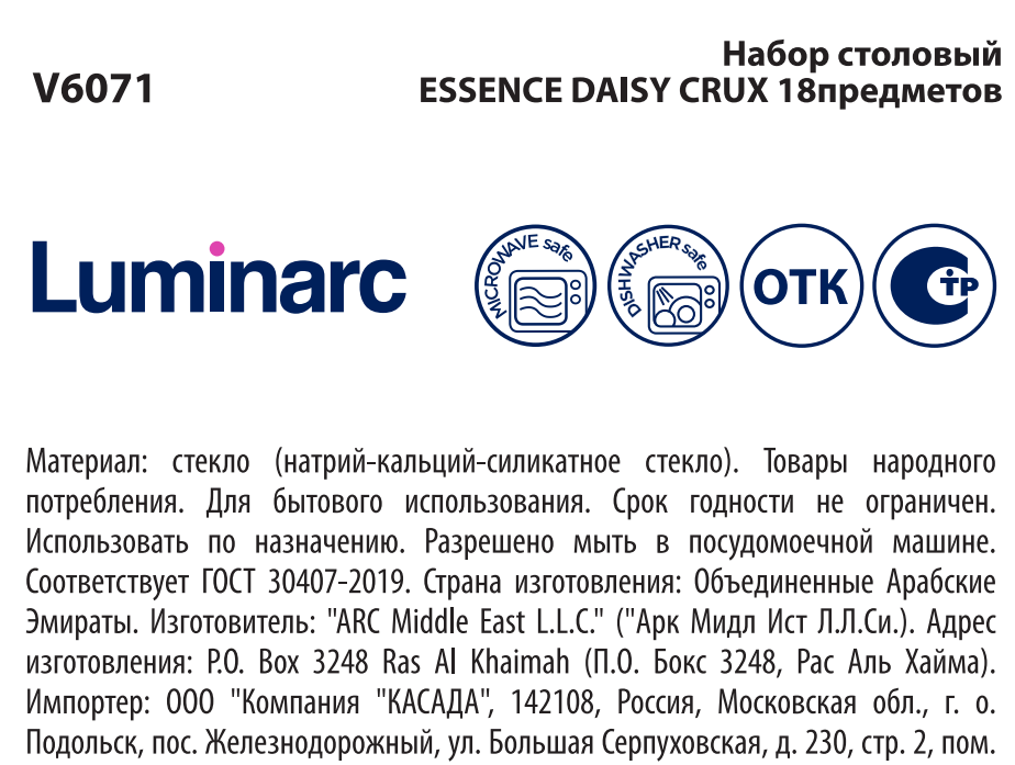 Набор столовый ESSENCE DAISY CRUX 18пр LUMINARC интересное: