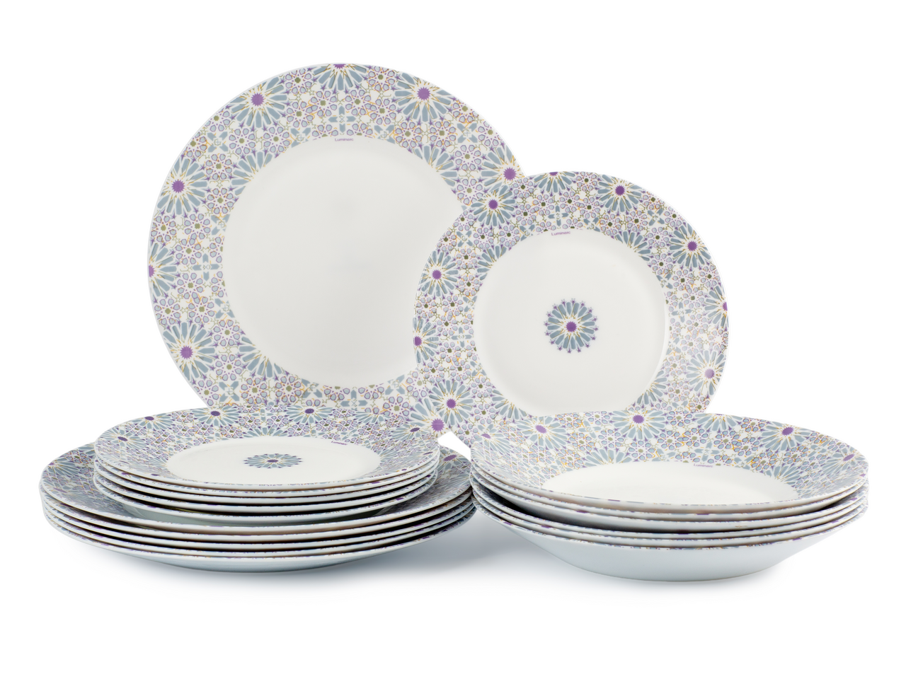 | Комплектация | тарелка обеденная, 24 см - 6 шт., тарелка десертная, 19 см - 6 шт., тарелка глубокая, 22 см - 6 шт. |