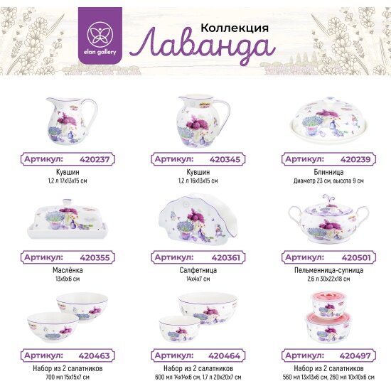 Чайный набор Elan Gallery "Лаванда" на ножке, 12 предметов интересное: