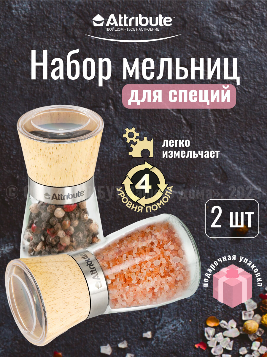 Набор Attribute мельниц для специй SPICE WOOD, 2шт (AGS359)
