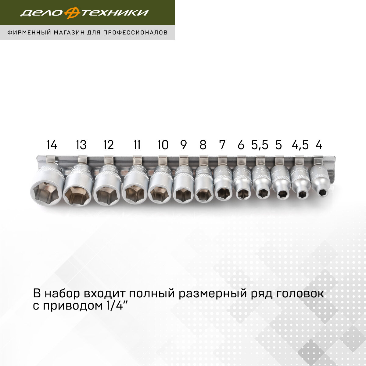 Набор головок 6-ти гранных (4-14 мм; 1/4\") 13 шт. Дело Техники 600113 15592547 интересное: