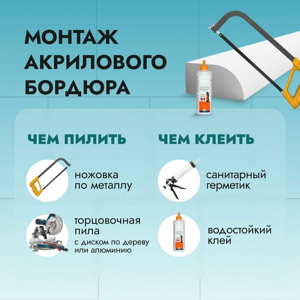 СохранитьАкриловый бордюр для ванной П96 - длина 750 мм, ширина 9.6 см правая сторона плинтус для ванны интересное: