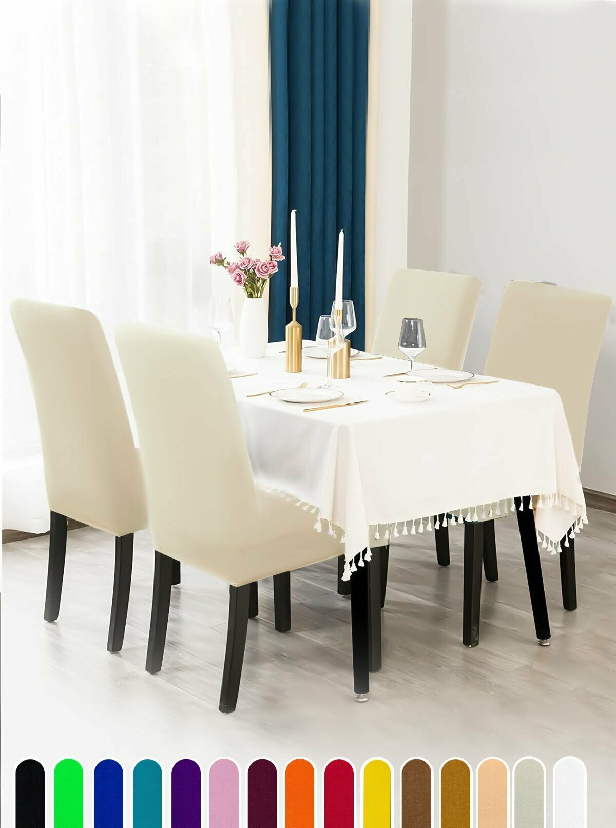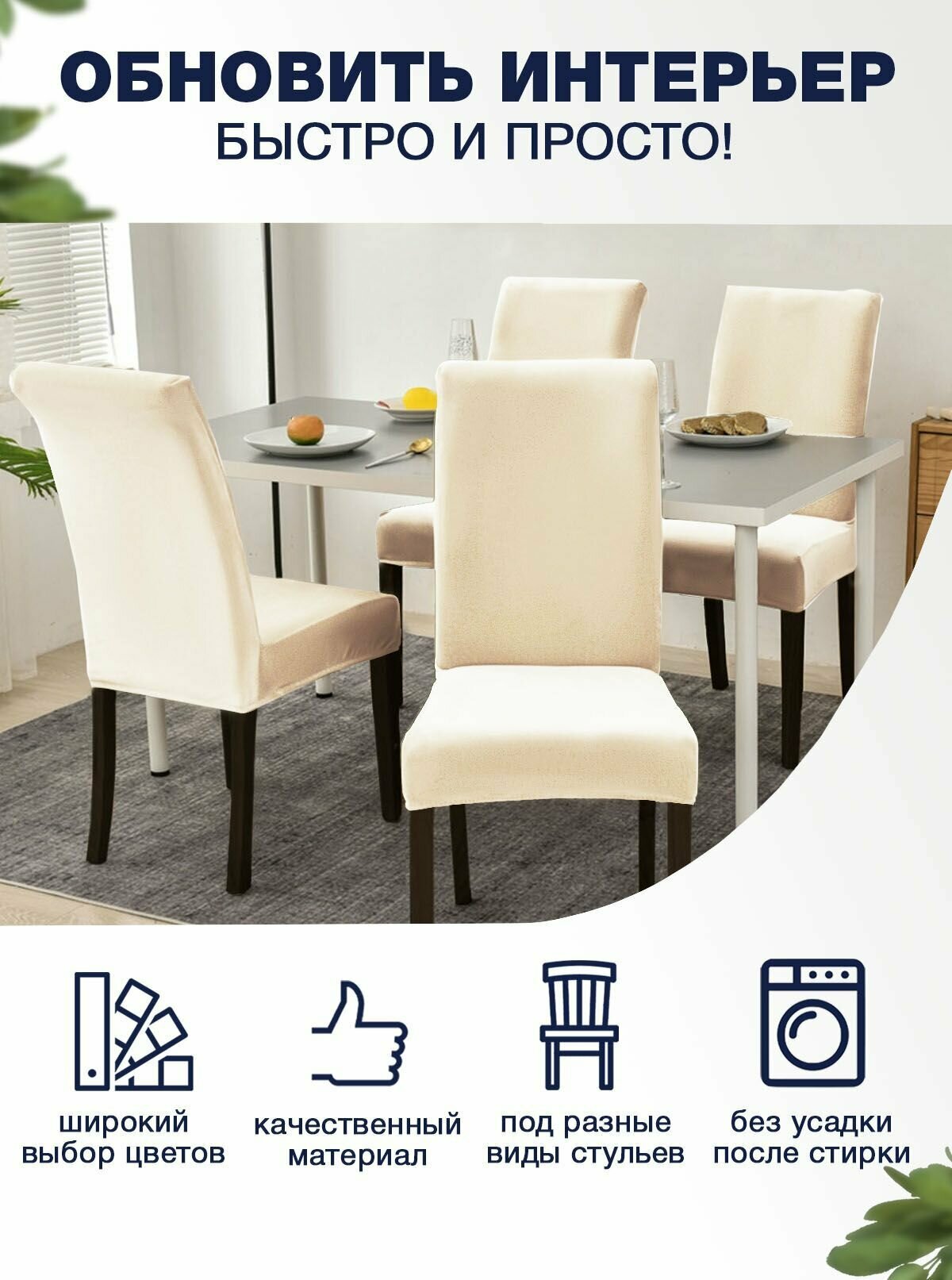 Чехол на стул, чехол для стула со спинкой, Комплект 4 шт, чехлы для мебели, Коллекция "Jersey" Кремовый