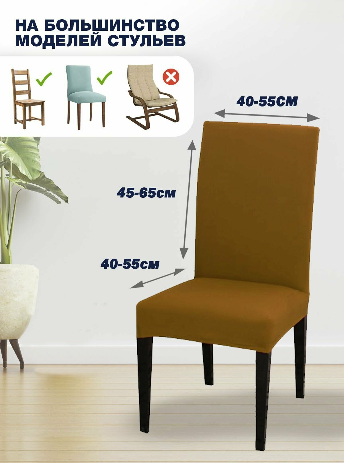 Чехол на стул, чехол для стула со спинкой, Комплект 4 шт, чехлы для мебели, Коллекция "Jersey" Светло-коричневый