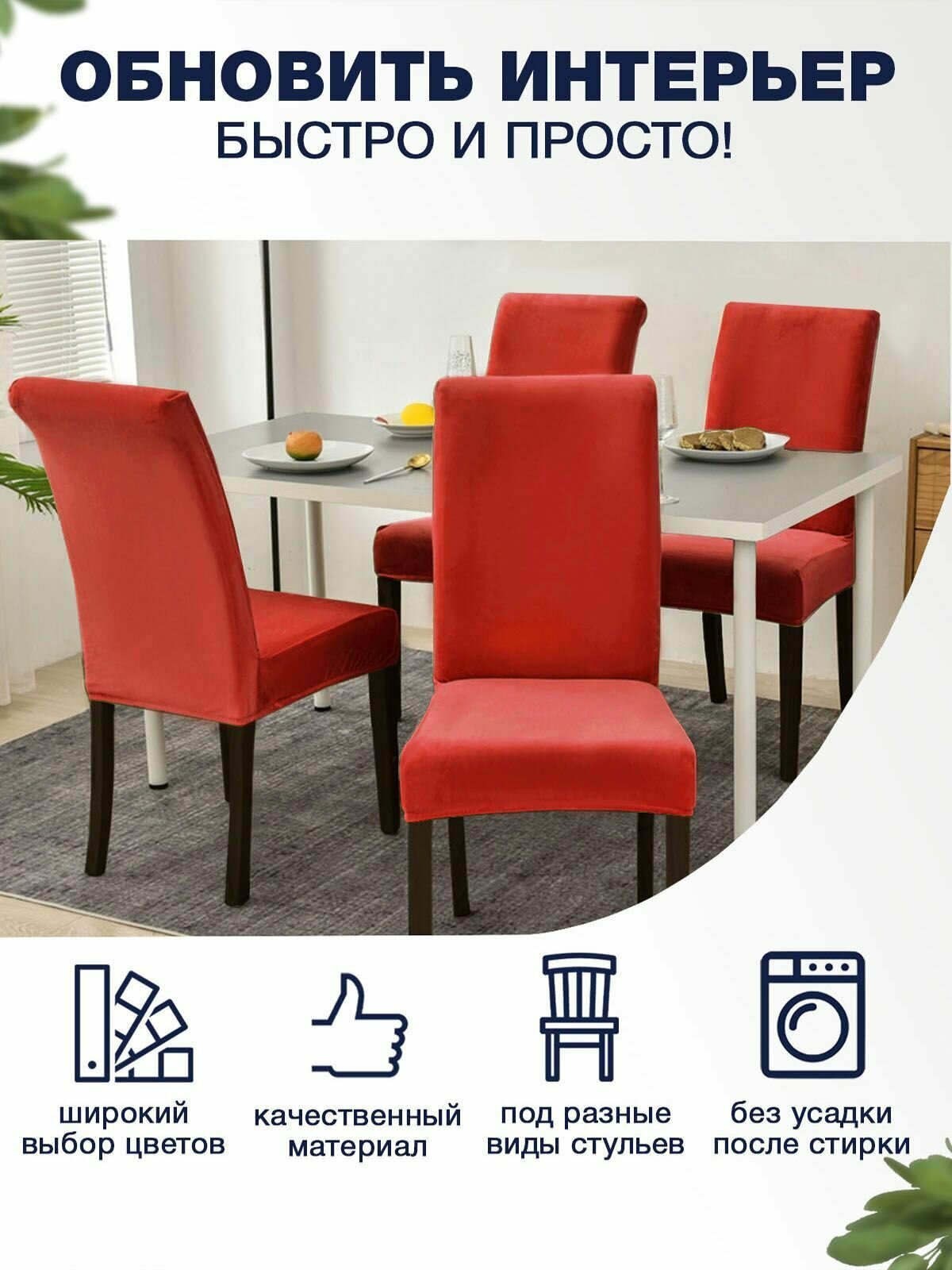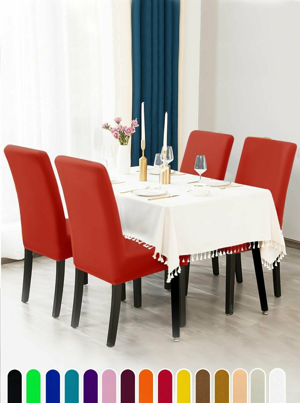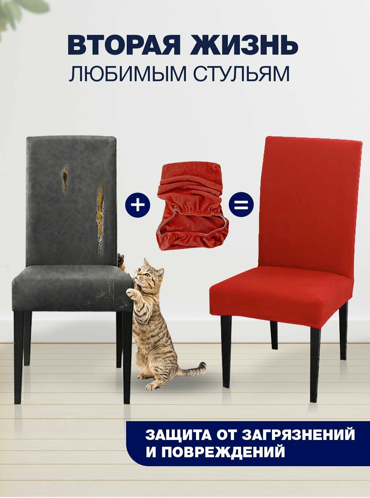 Чехол на стул, чехол для стула со спинкой, чехлы для стульев, Коллекция "Jersey", Красный, Комплект 4 шт.