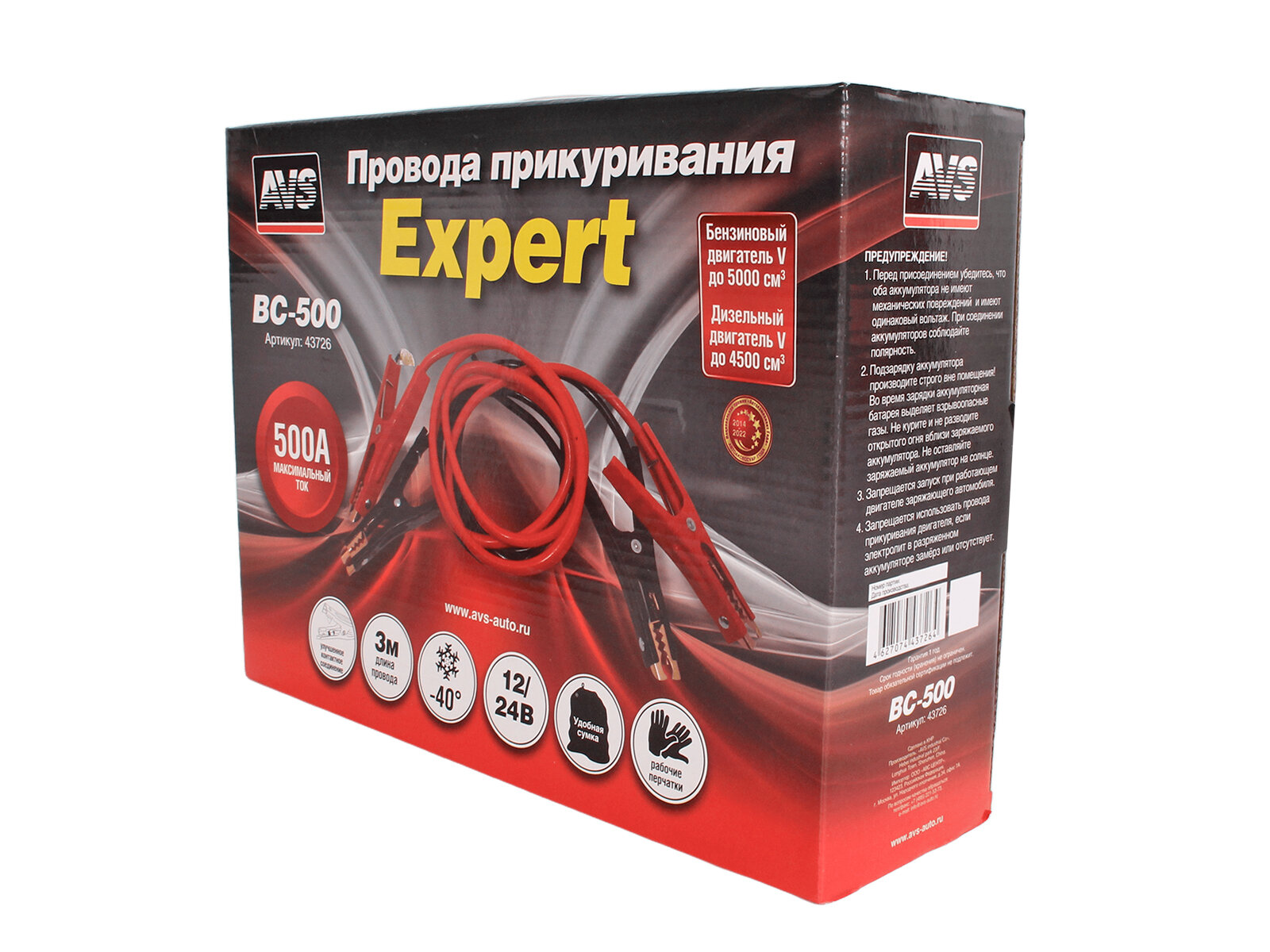 43726, 43726_провода прикуривания AVS Expert BC-500! 500А, 3м\