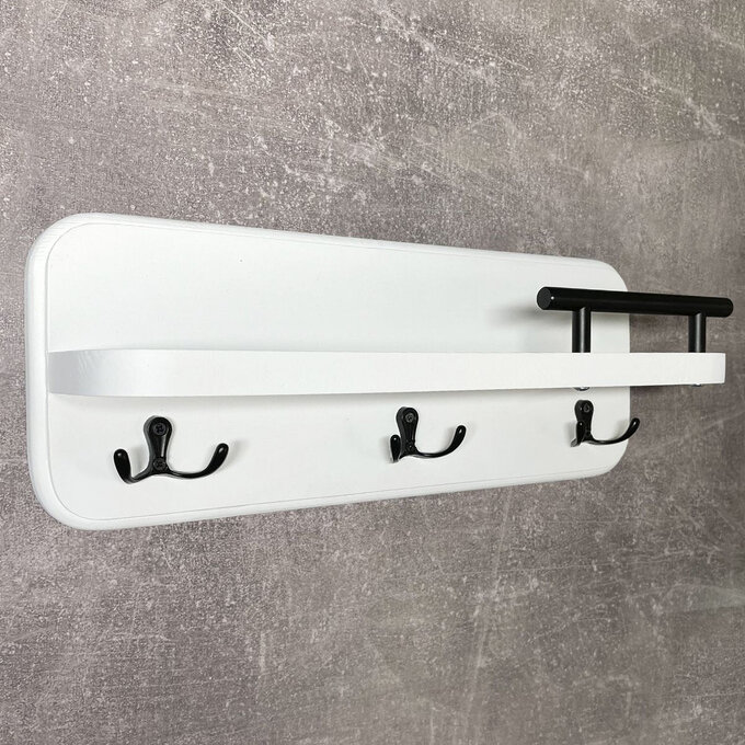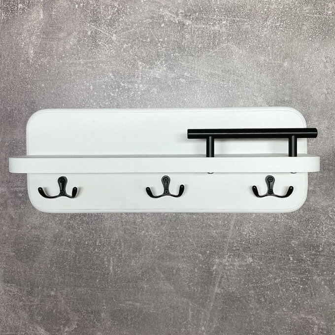 Полка настенная с крючками белая Ключница на стену деревянная