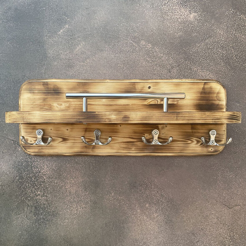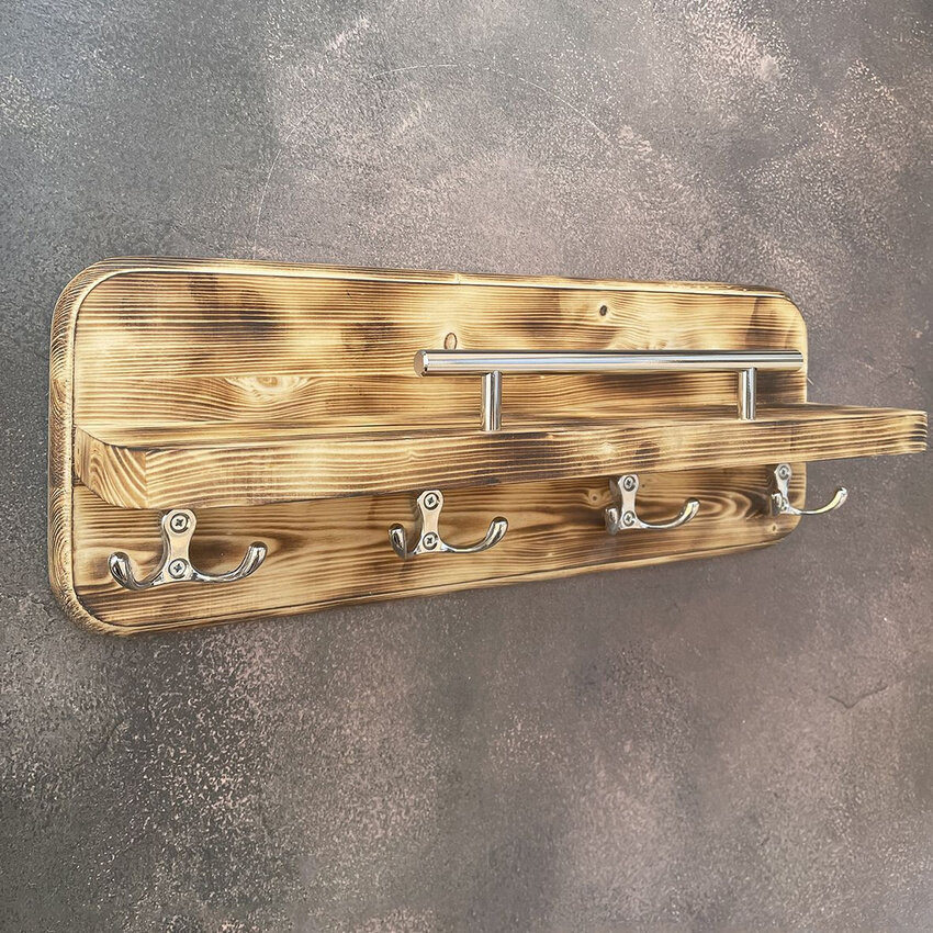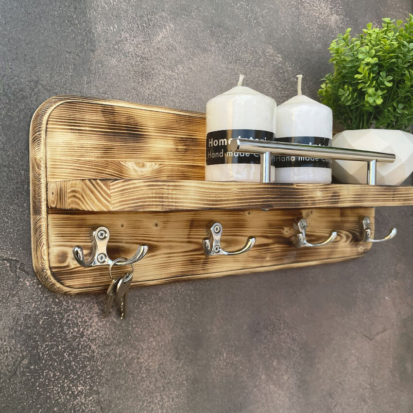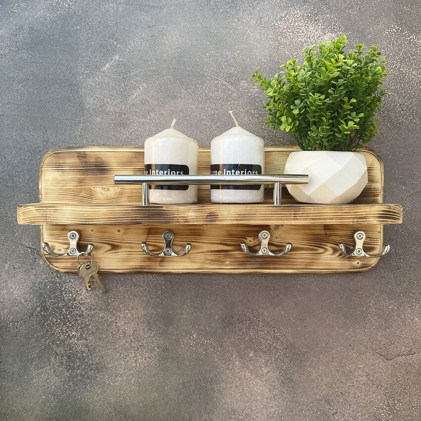 Ключница на стену деревянная полка с крючками